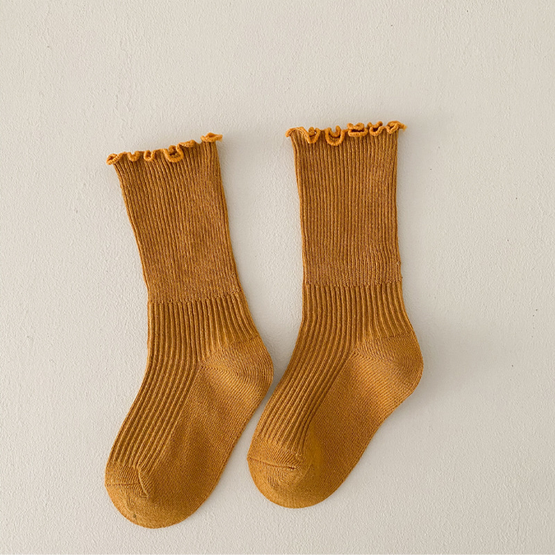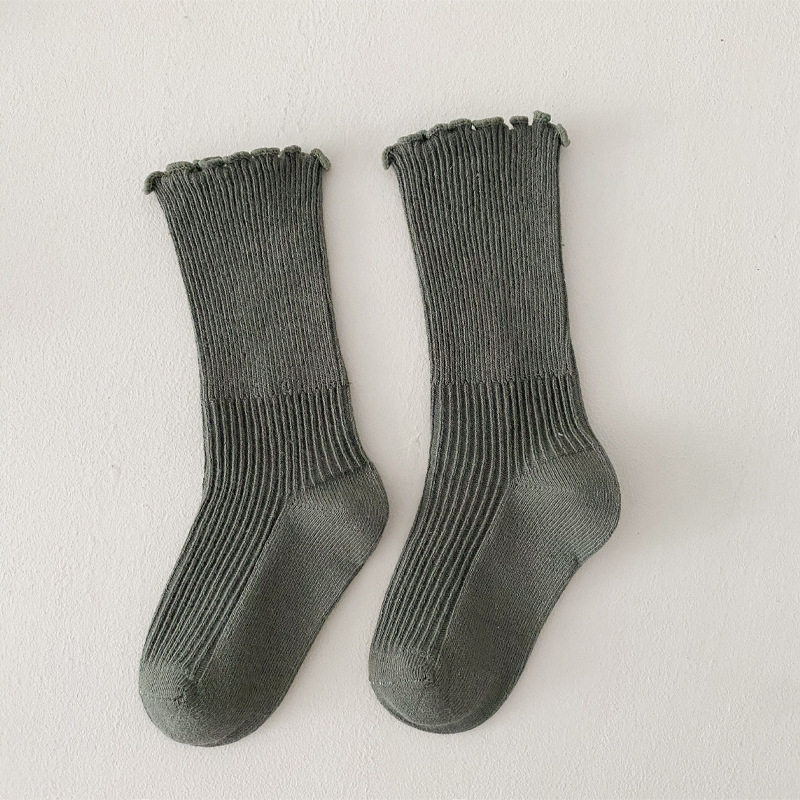 아동용 양말 도매, 가을 신상 여아 양말, 귀엽고 깃털 장식의 중간 길이 양말, 단색 레이스 공주풍 면 양말스토어 가기