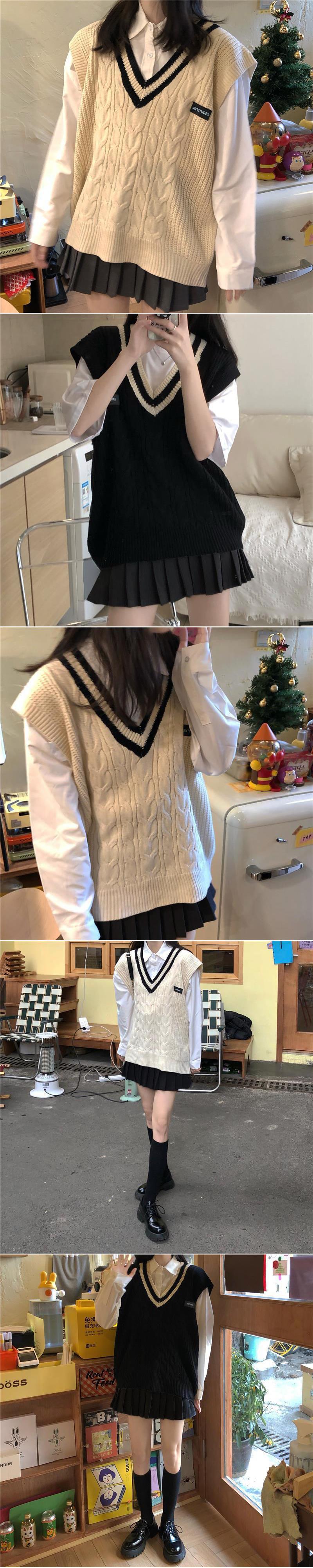 대학생 스타일 배색 유니폼 니트 스웨터 여성 가을 한국 스타일 캐주얼 달콤한 트렌디 조끼 여성용 레이스 꽃무늬스토어 가기