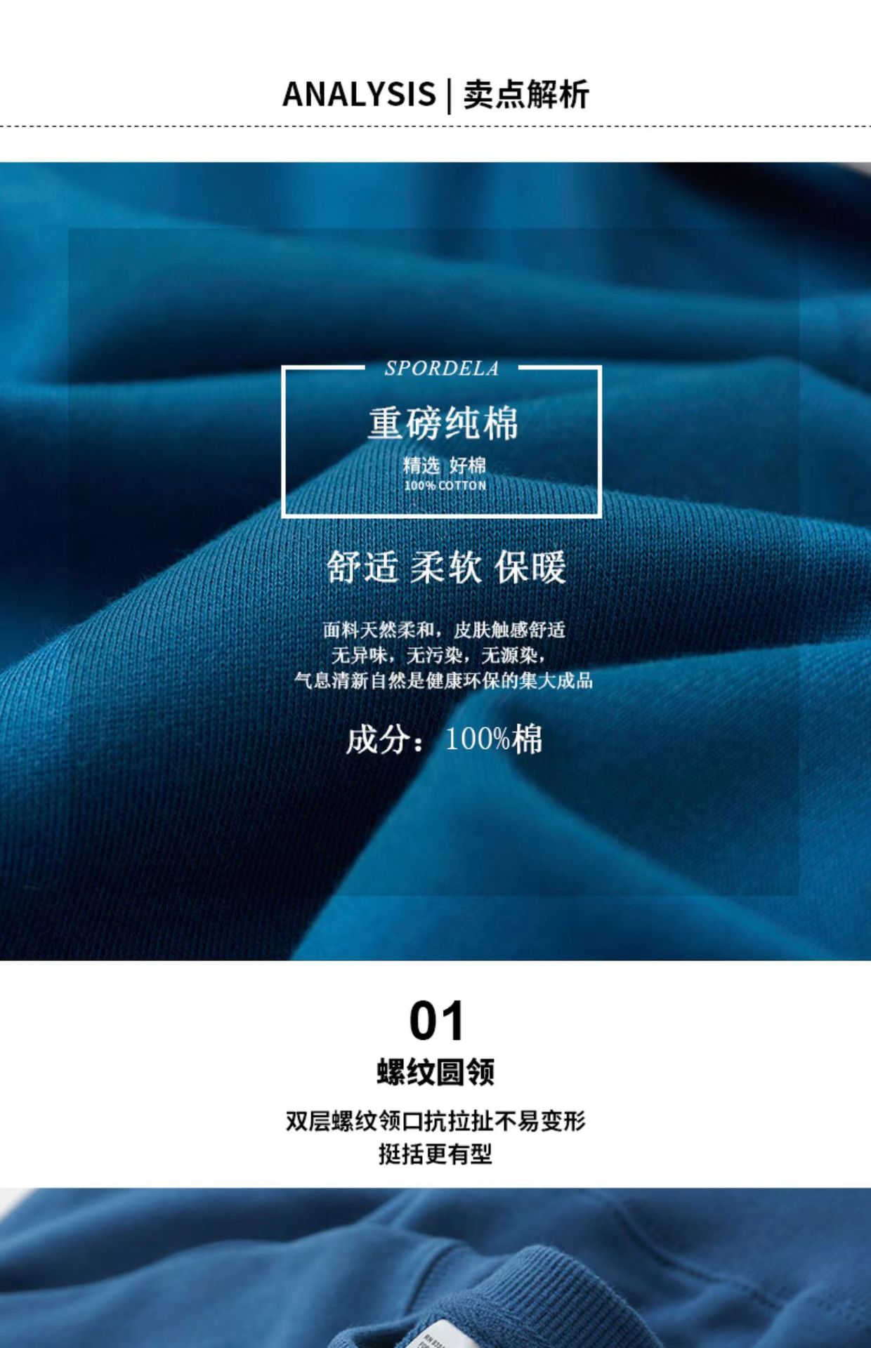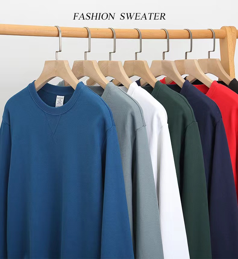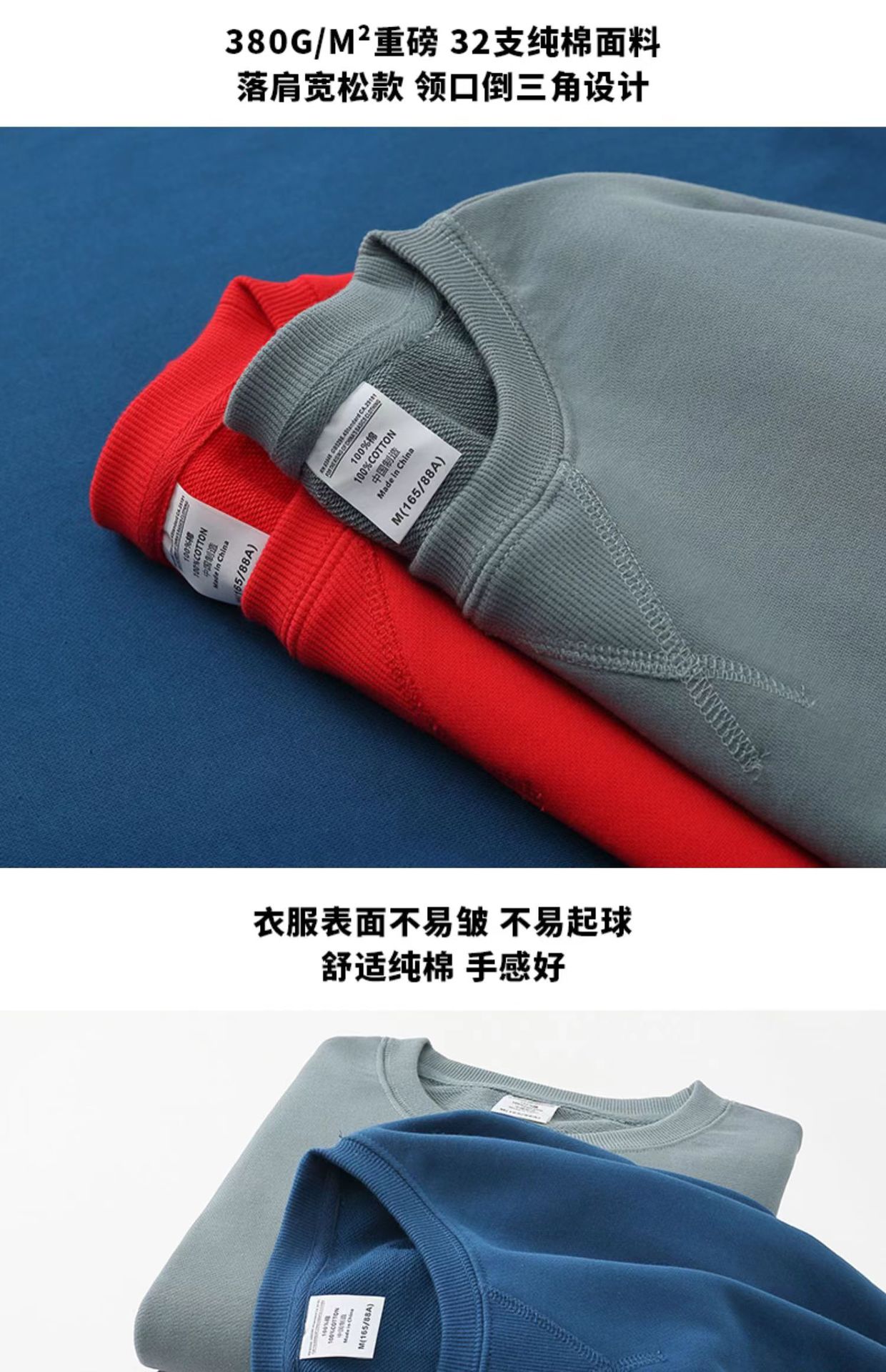 380g 무거운면 테리 스웨터 남성용 아메리칸 레트로 솔리드 컬러 긴 소매 크루 넥 스웨터 남녀스토어 가기