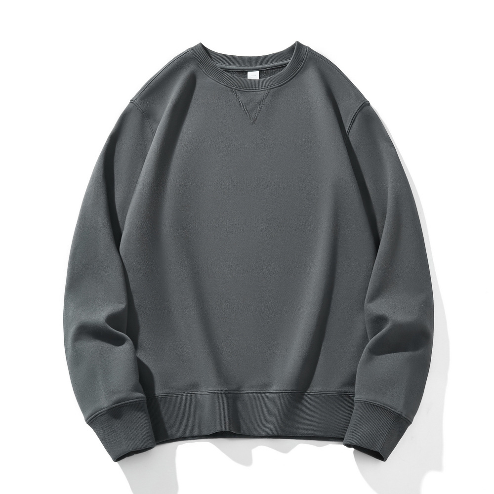 380g 무거운면 테리 스웨터 남성용 아메리칸 레트로 솔리드 컬러 긴 소매 크루 넥 스웨터 남녀