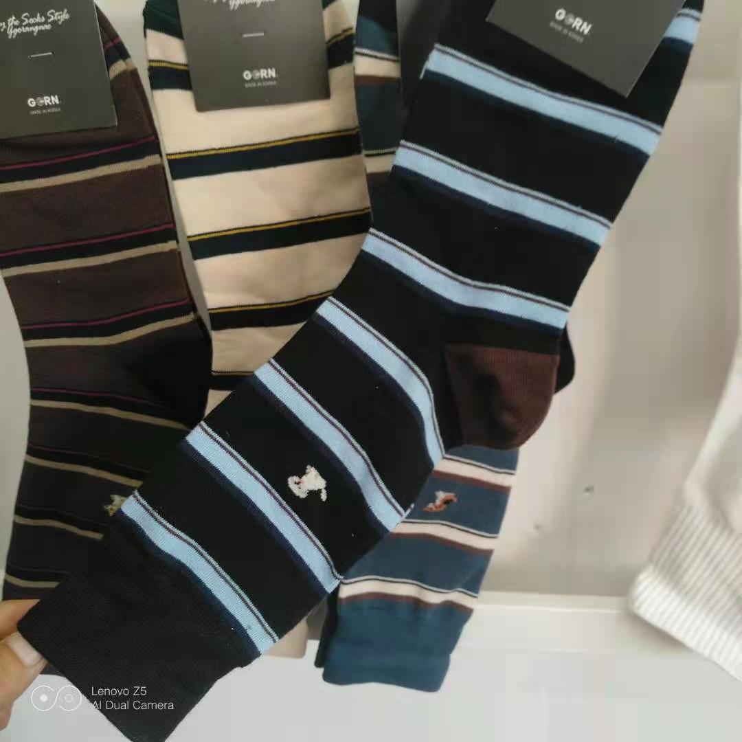 0 한국 양말 gg 면 소재 부드러운 스트라이프 남성용 면 양말 만화 강아지 통기성 땀 흡수 중목 양말 밍펑