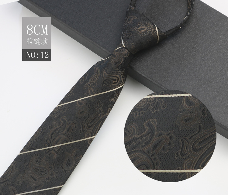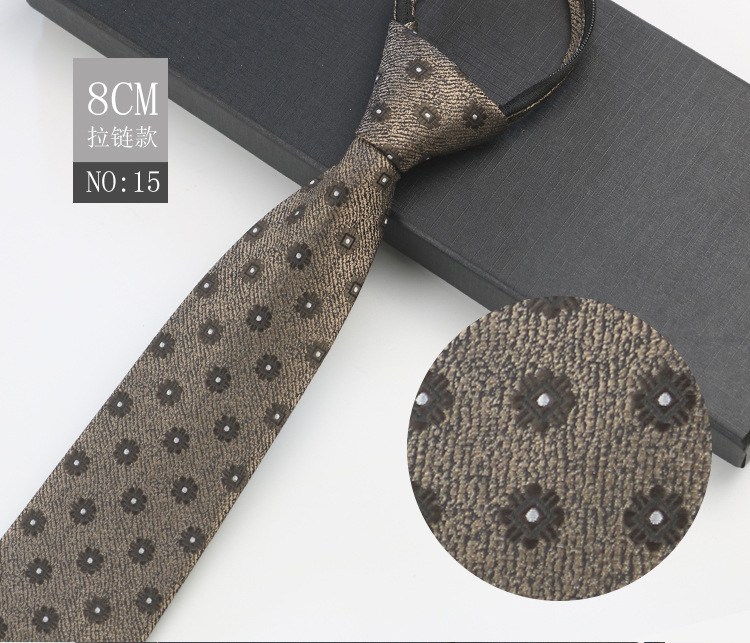 지퍼 넥타이 남성 비즈니스 전문 작업 셔츠 세트 사진 다크 브라운 패턴 1200 바늘 자카드 넥타이스토어 가기