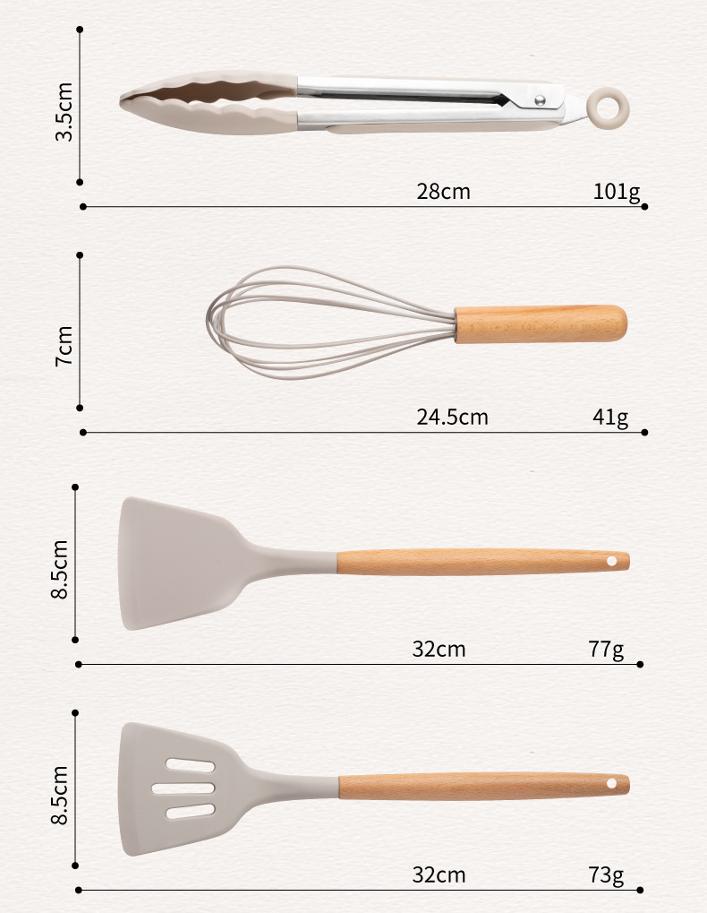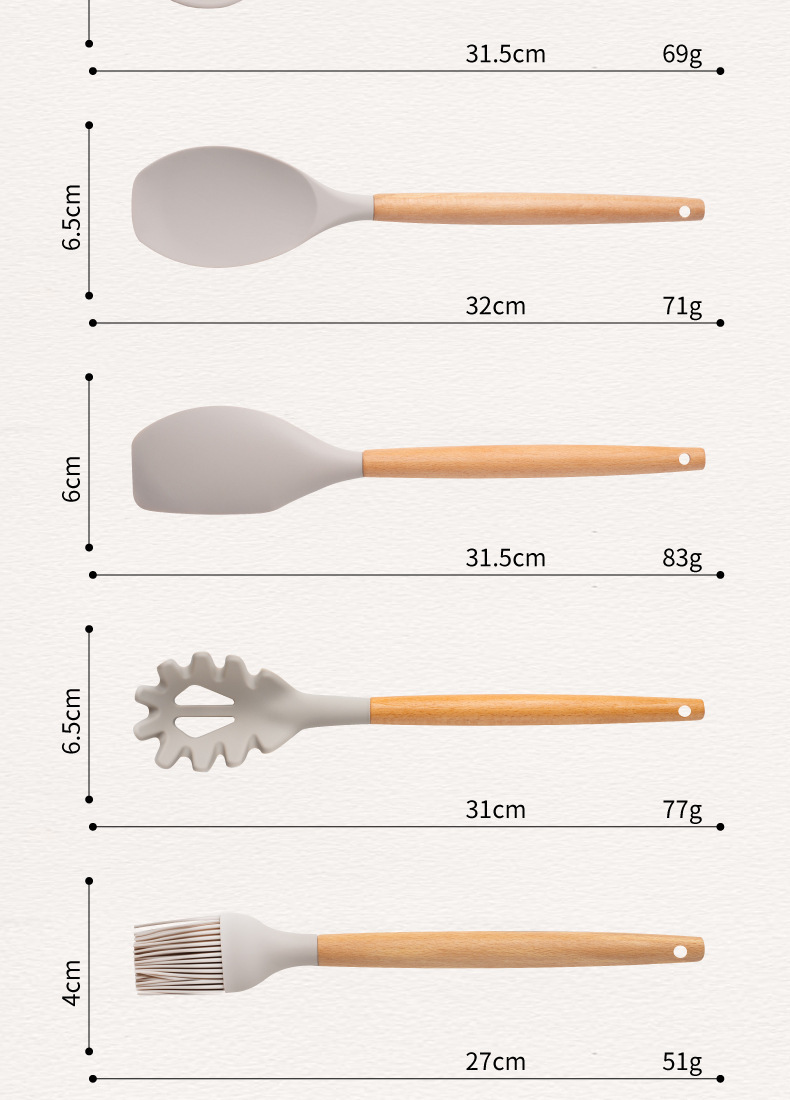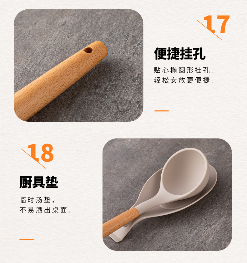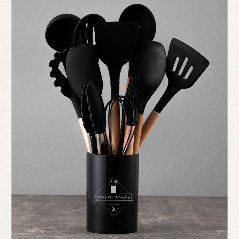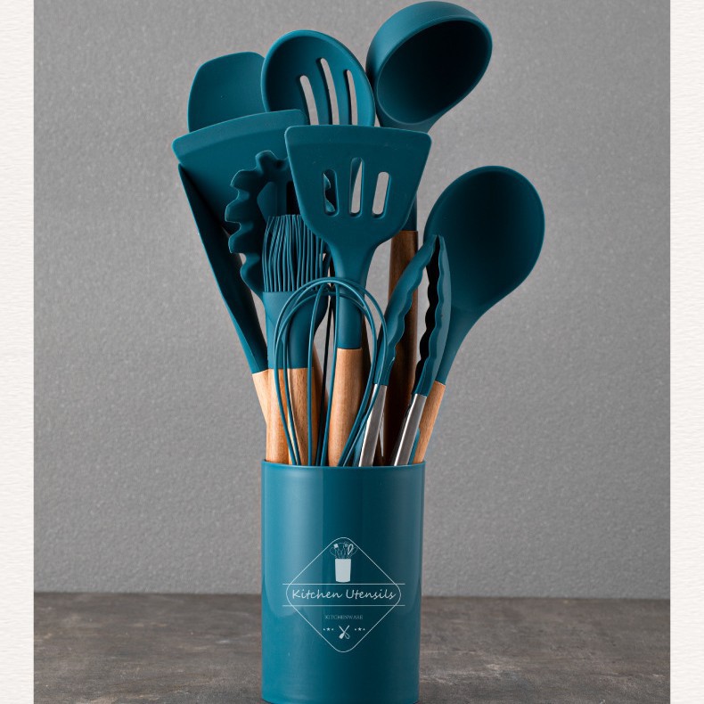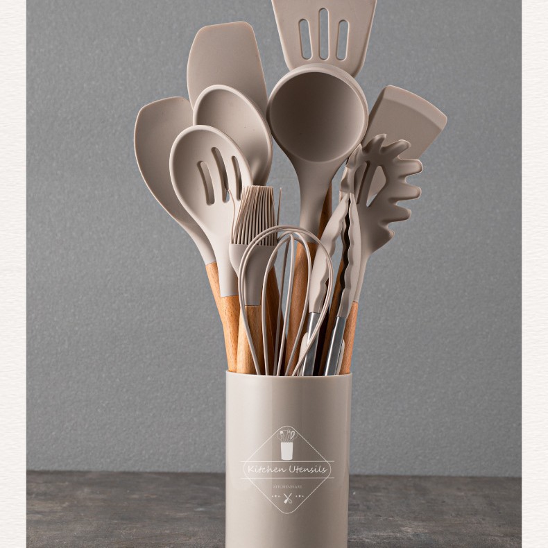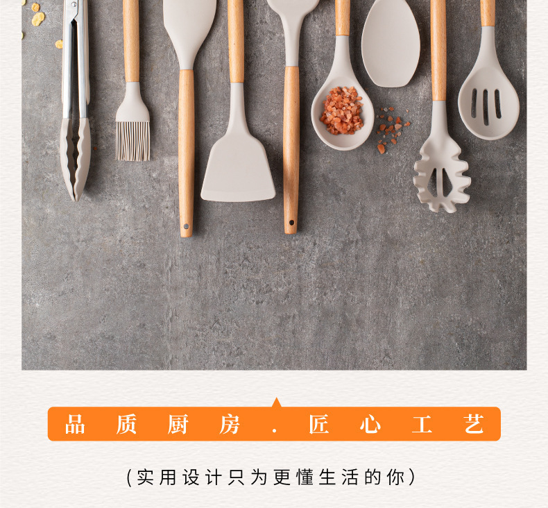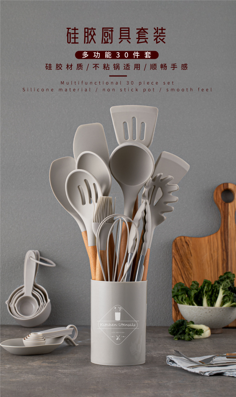 스팟 도매 실리콘 주방 용품 세트 12 조각 나무 손잡이 주방 용품 세트 비 스틱 팬 요리 실리콘 주방 용품 33 조각스토어 가기