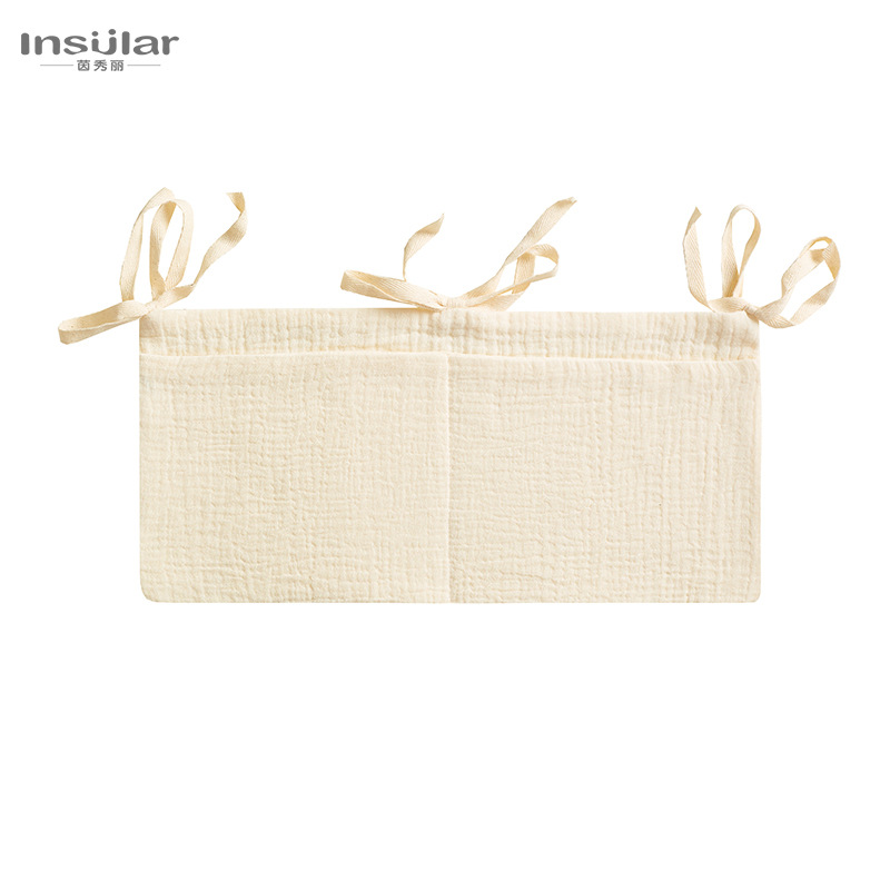 유럽과 미국의 더블 레이어 코튼 크레페 아기 침대 옆 보관 가방 더블 포켓 아기 자동차 교수형 가방 아기 병 교수형 가방