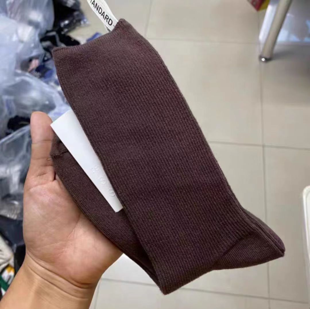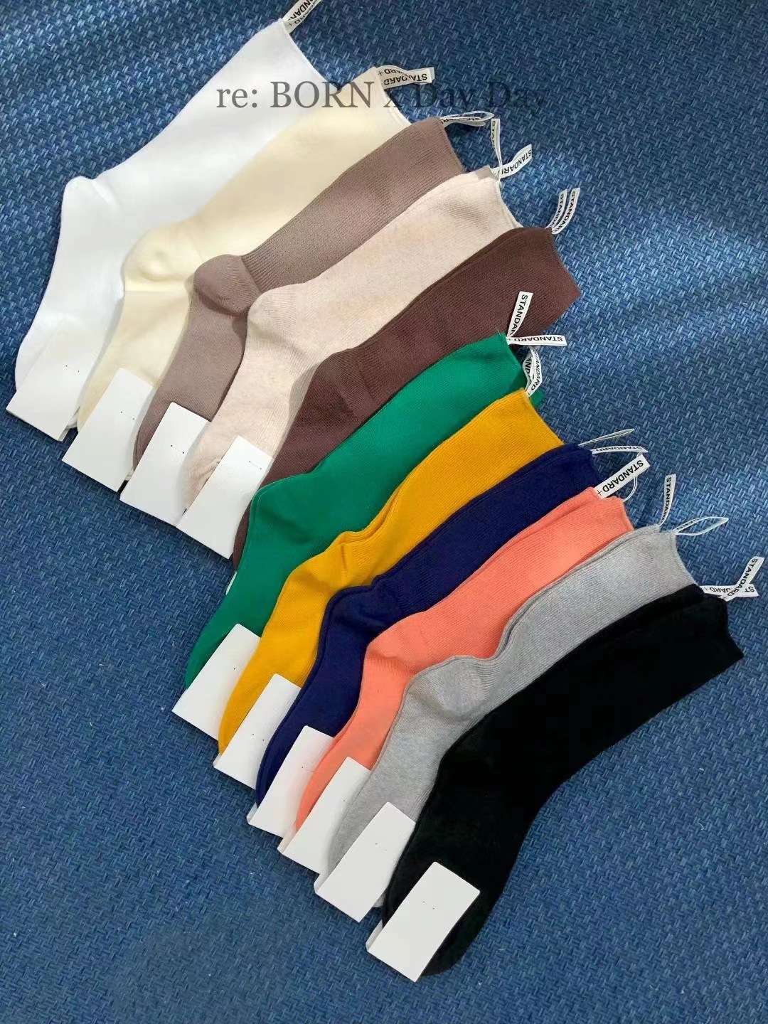 수입 한국 양말 re:BORN 오리지널 틈새 고급 힐 라벨 솔리드 컬러 세로 패턴 하이웨이스트 양말