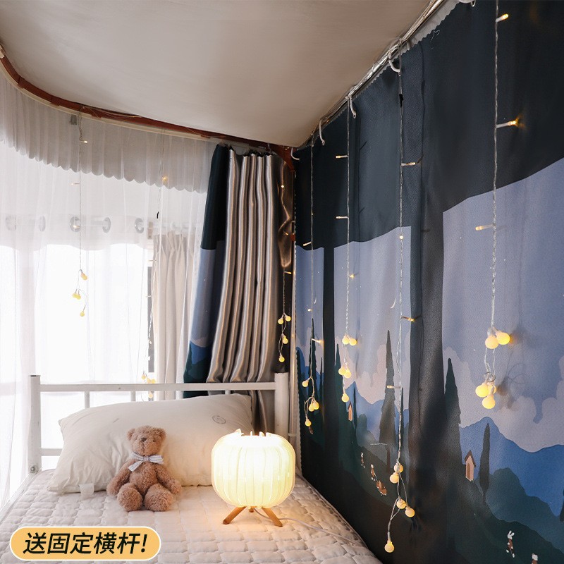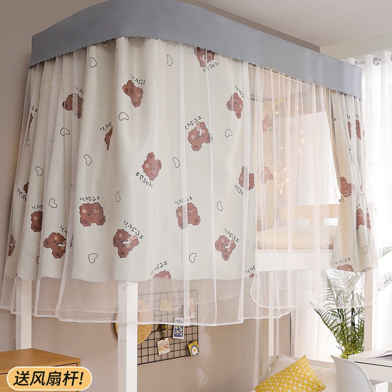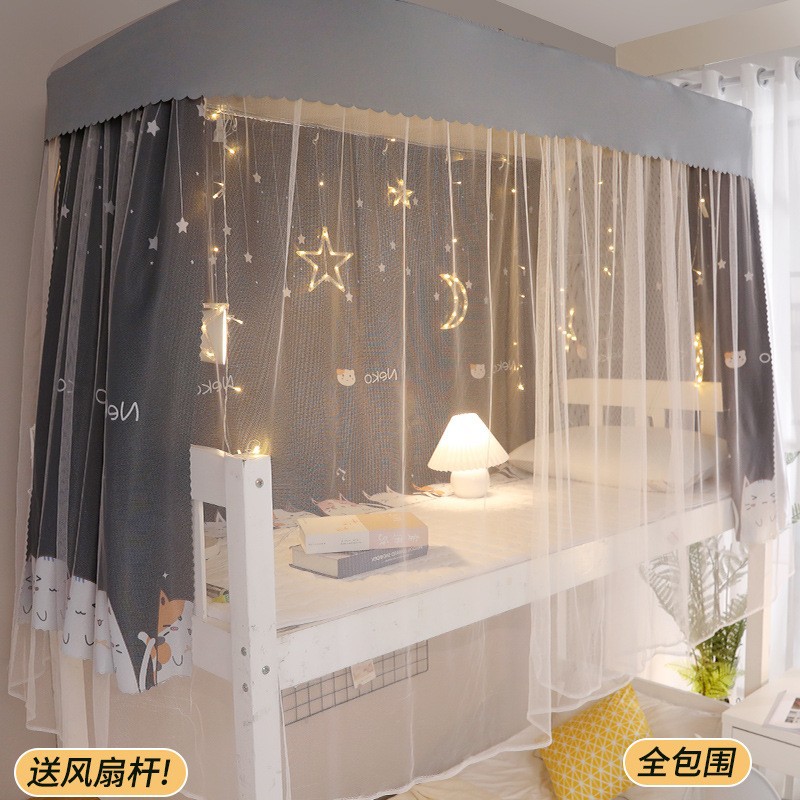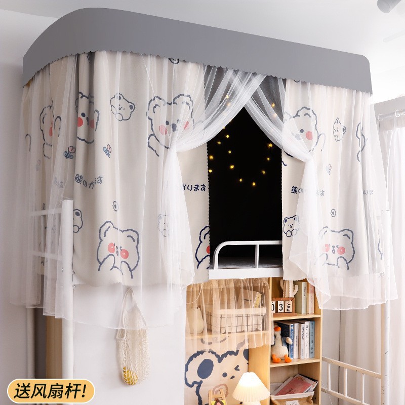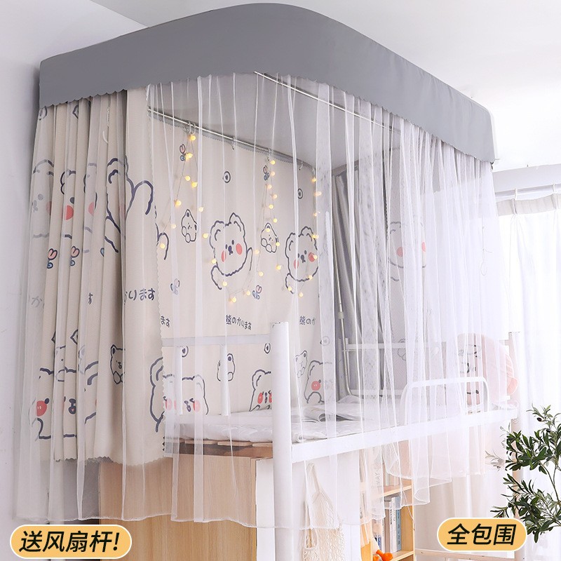 가이드레일 침대 커튼과 모기장 일체형, 두꺼운 차광천, U자형 레일, 학생 기숙사 상층 침대, 상하층 침대, 지붕 포함