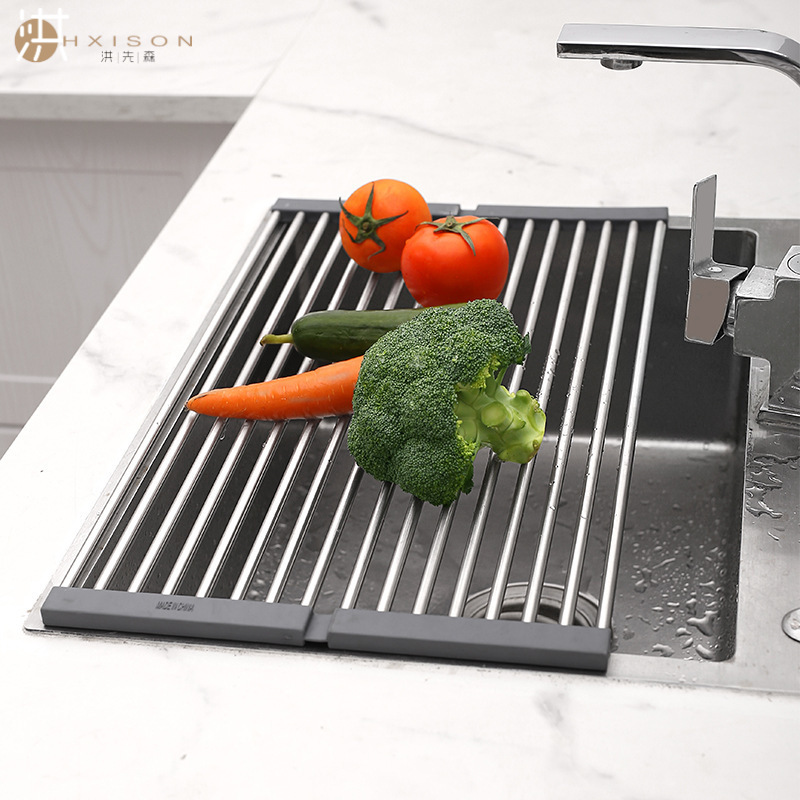두꺼운 접이식 스테인레스 스틸 그릇 젓가락 배수 랙 주방 싱크 랙 물 필터 랙 식기 과일 및 야채 필터 랙스토어 가기