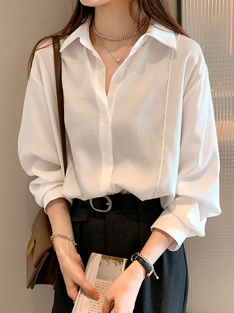 화이트 셔츠 여성의 봄과 가을 새로운 올 매치 디자인 센스 니쉬 탑 커처 긴팔베이스 스택 셔츠 재킷