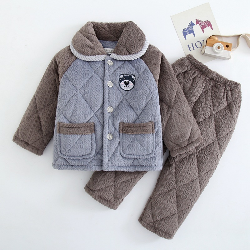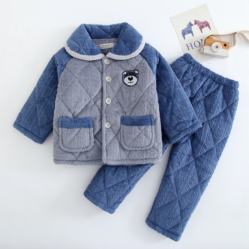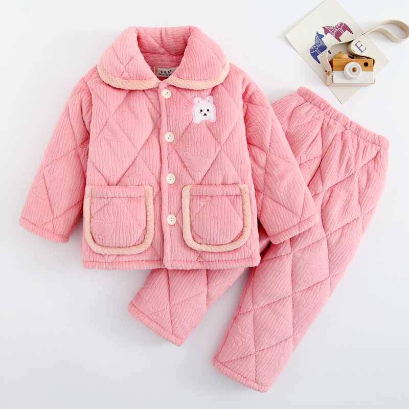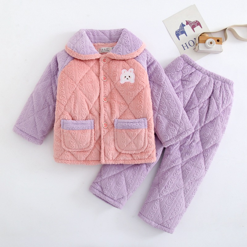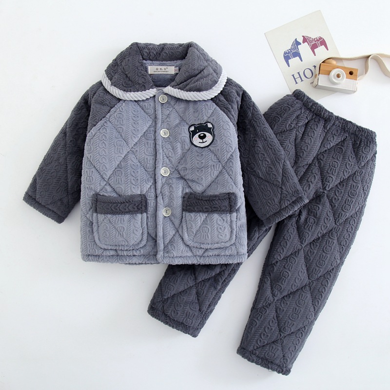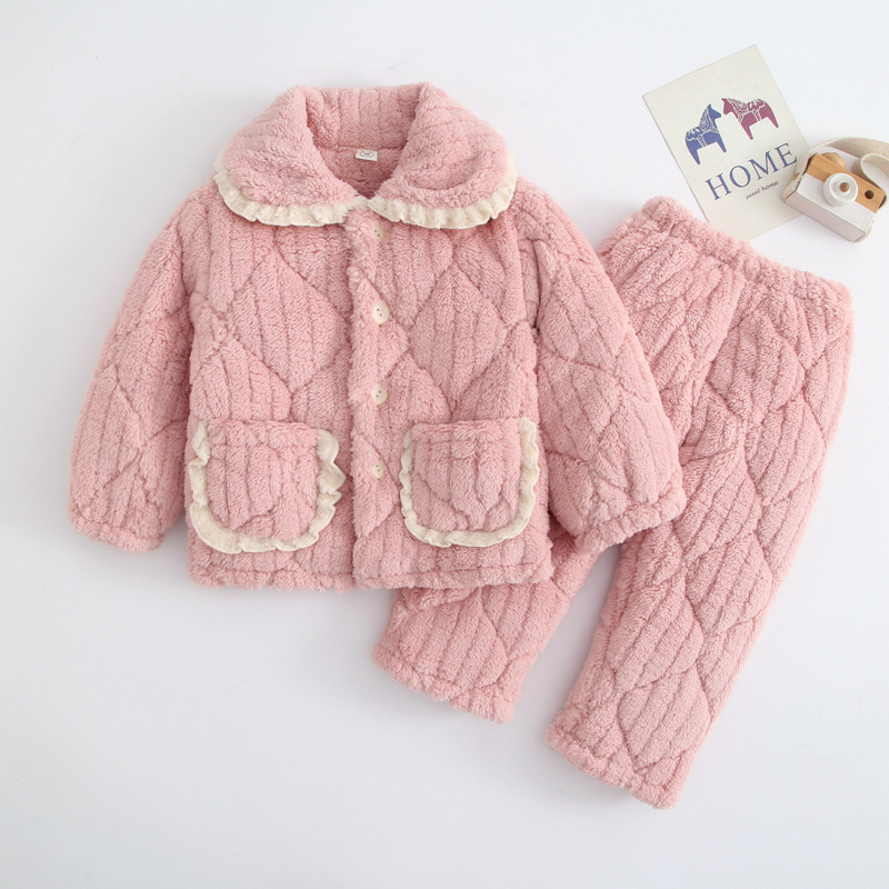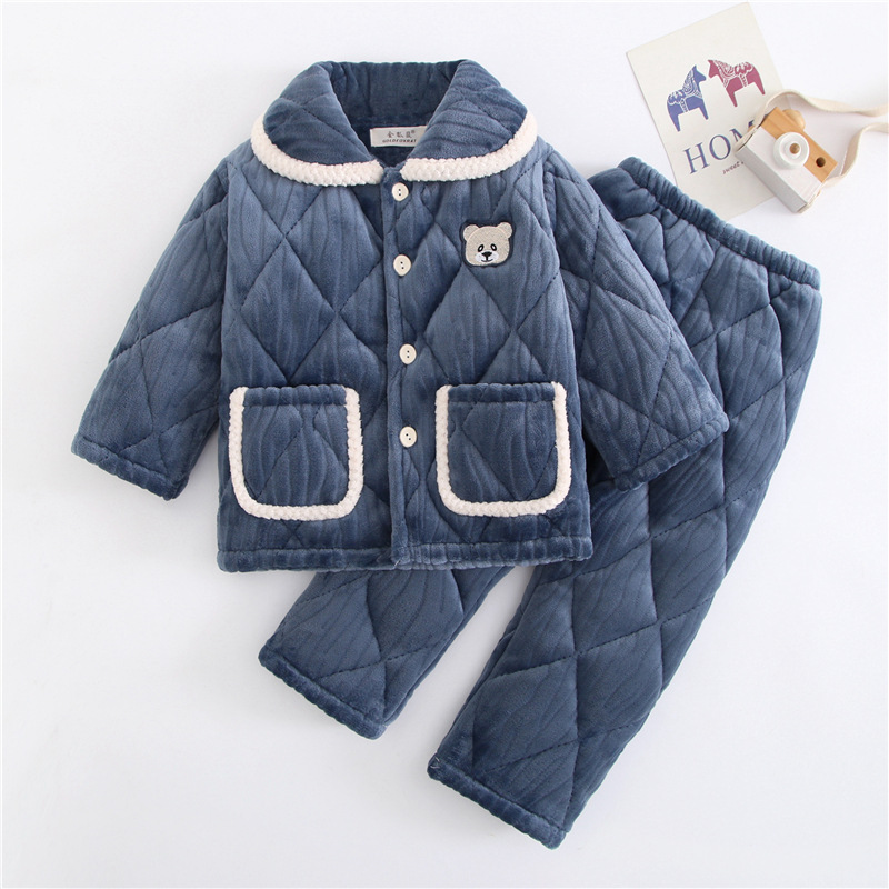 2024 년 어린이 잠옷 소녀의 겨울 기모 두꺼운 3 층 퀼트 중첩 소년의 겨울 집 옷
