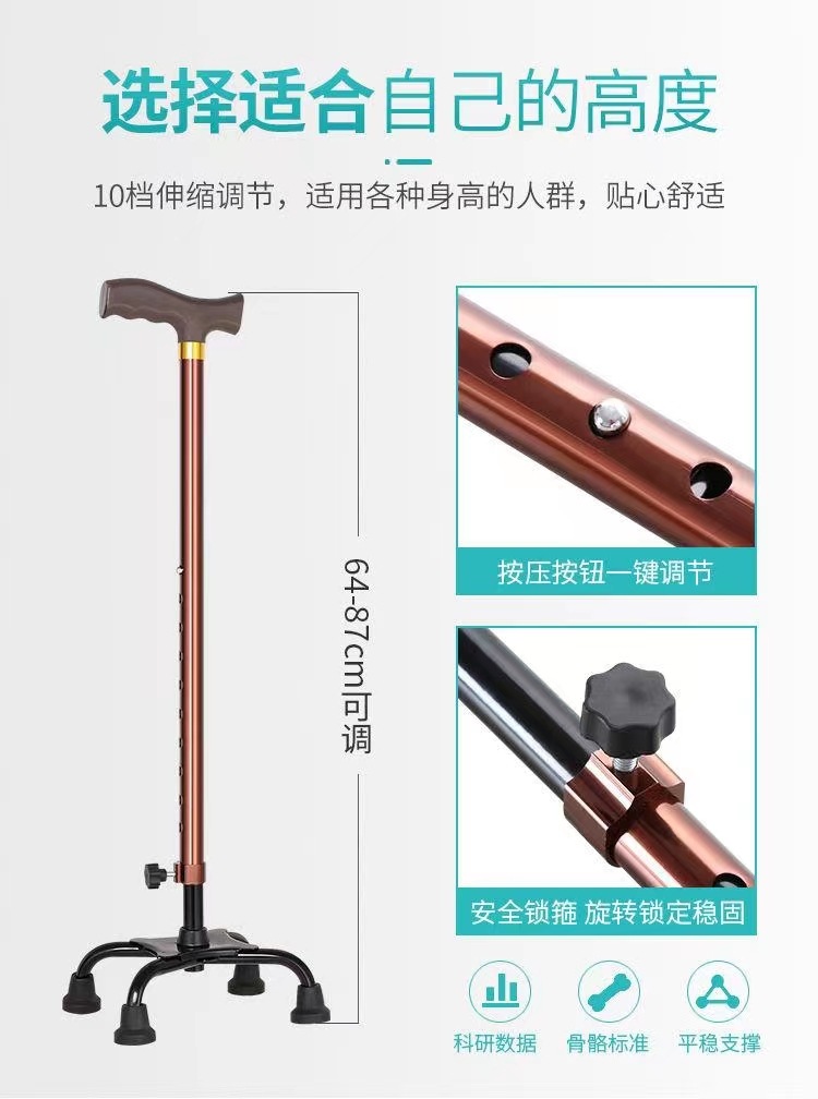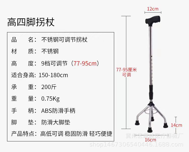 노인을위한 스테인레스 스틸 목발 4 발 경량 미끄럼 방지 워킹 스틱 다기능 텔레스코픽 지팡이 조절 가능한 알루미늄 합금 워킹 스틱