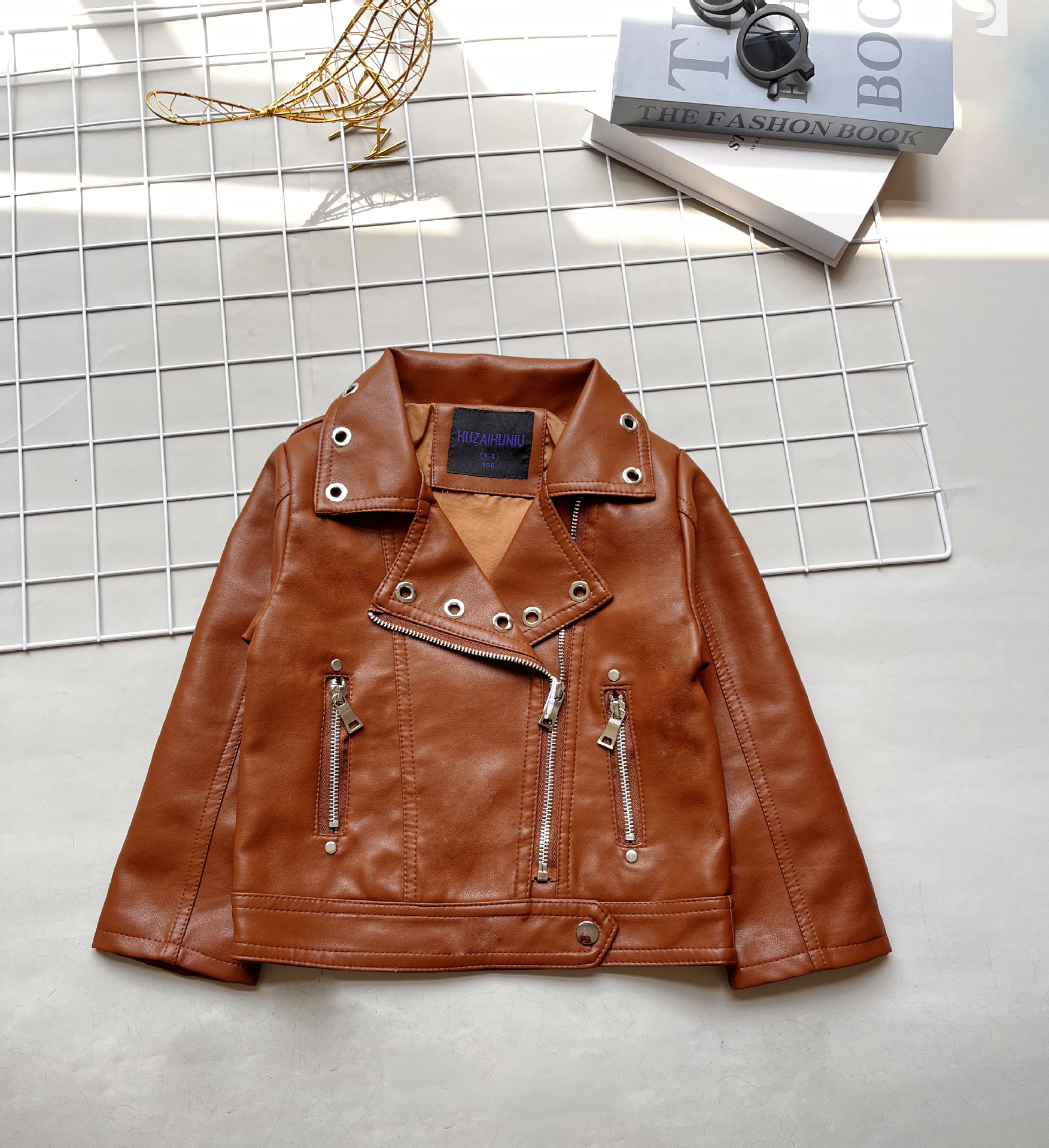 아동 의류 아동 가죽 코트 소년과 소녀를위한 기관차 가죽 자켓 2023 봄과 가을 새로운 한국 스타일 어린이 옷깃 코트
