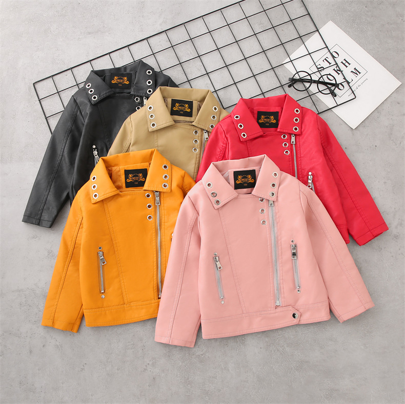 아동 의류 아동 가죽 코트 소년과 소녀를위한 기관차 가죽 자켓 2023 봄과 가을 새로운 한국 스타일 어린이 옷깃 코트스토어 가기