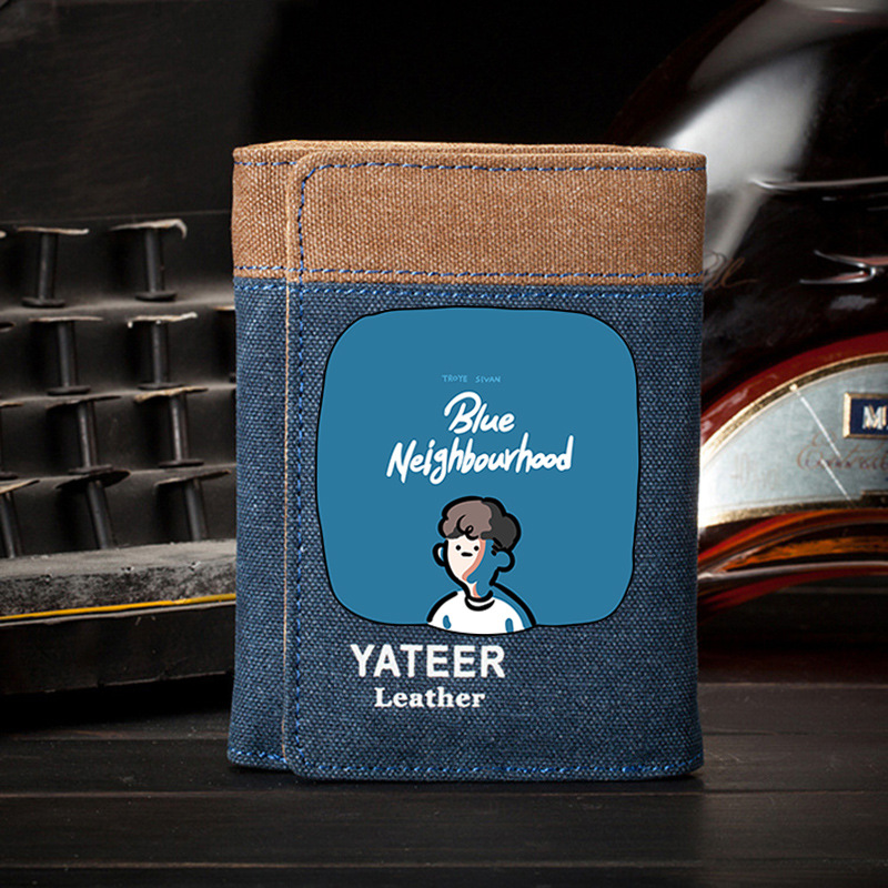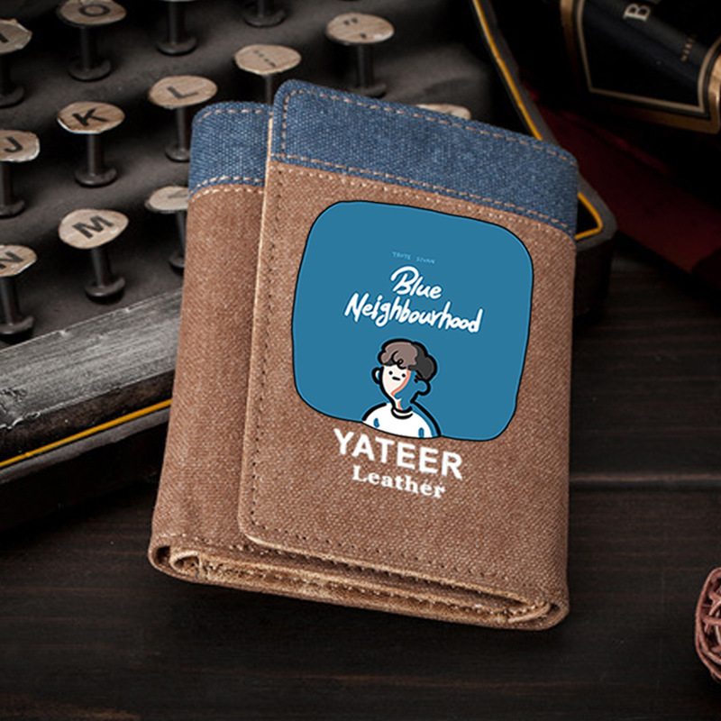 캔버스 지갑 남성용 Troyeshiwen 트렌디 브랜드 멀티 카드 레트로 학생 패션 한국식 30% 접이식 작은 지갑