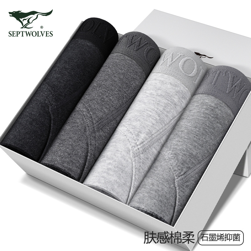 7 마리의 늑대 속옷 남성 브리프면 새로운 편안한 4 개의 일반 스트레치 코튼 남성 바지 4 박스스토어 가기
