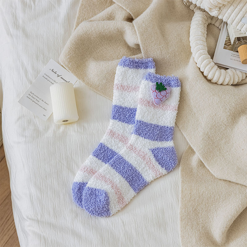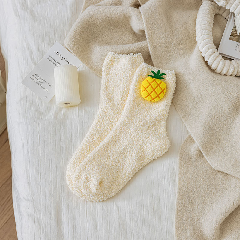 산호 양털 양말 여성용 일본 달콤한 귀여운 과일 양말 겨울 가정 따뜻한 수면 수건 바닥 양말