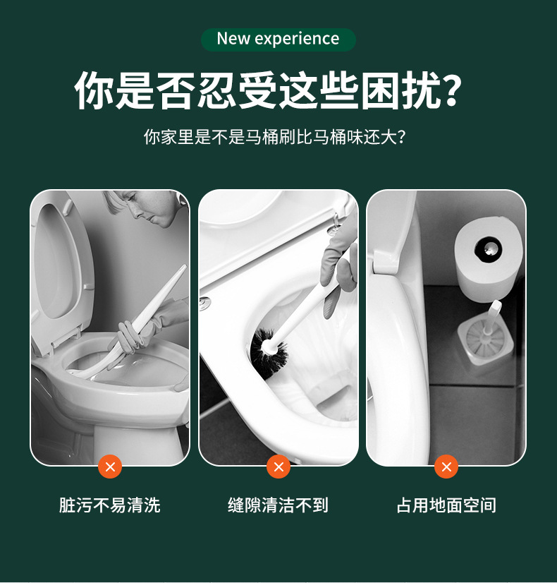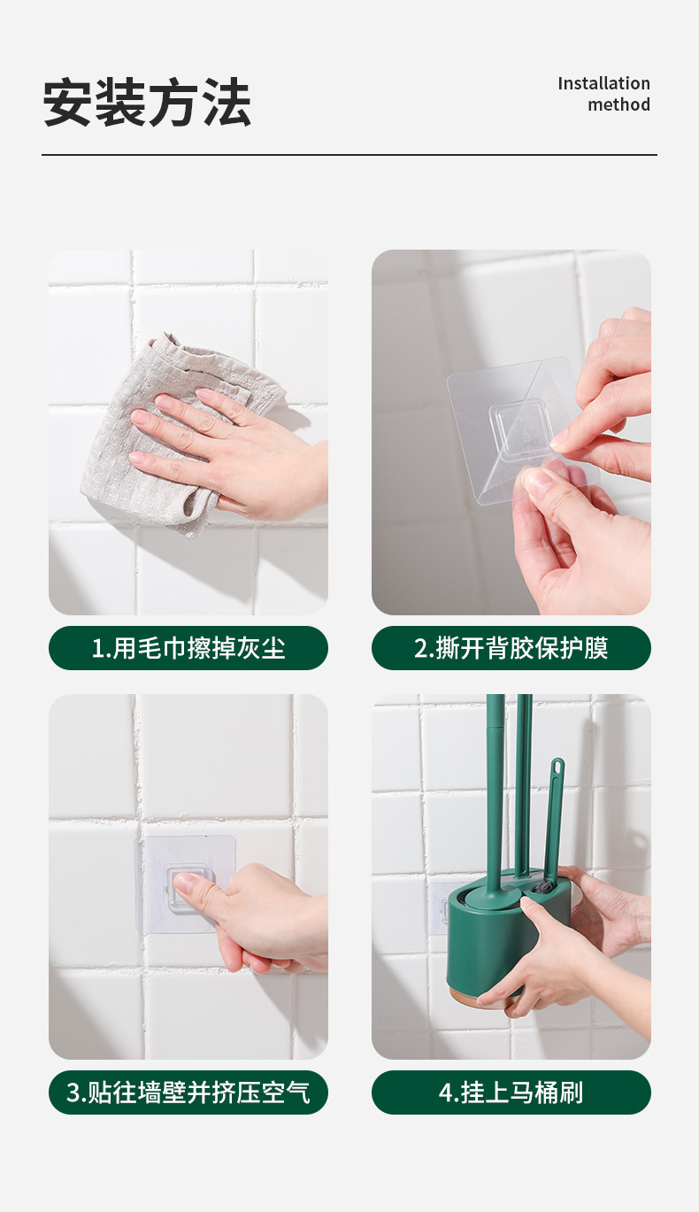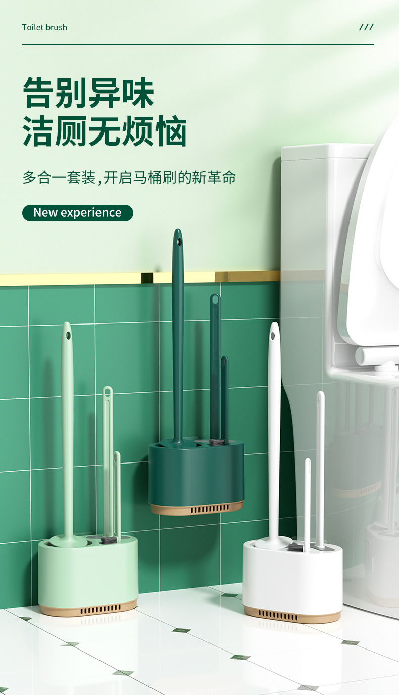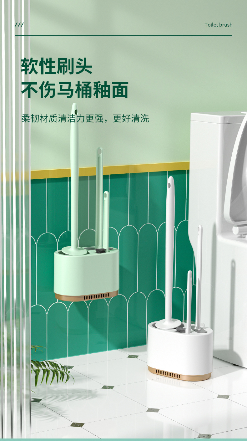 3-in-1 벽걸이형 변기솔 세트, 가정용 욕실용, 막힌 곳 없는 배수구, 화장실 청소용 3종 세트, 청소솔스토어 가기