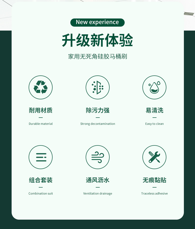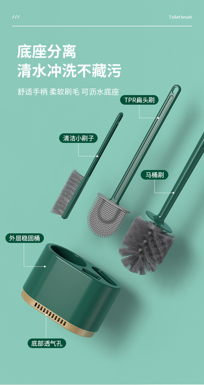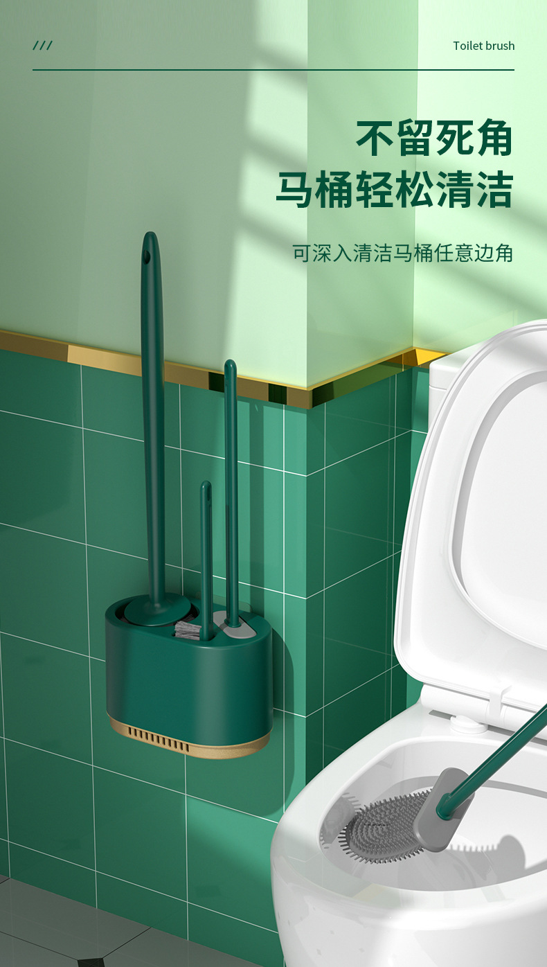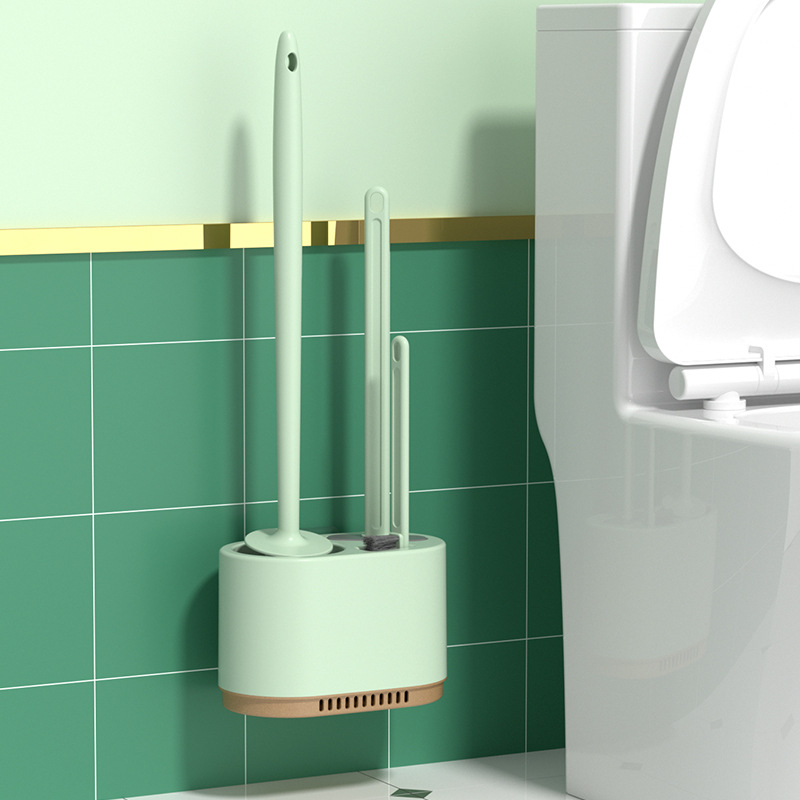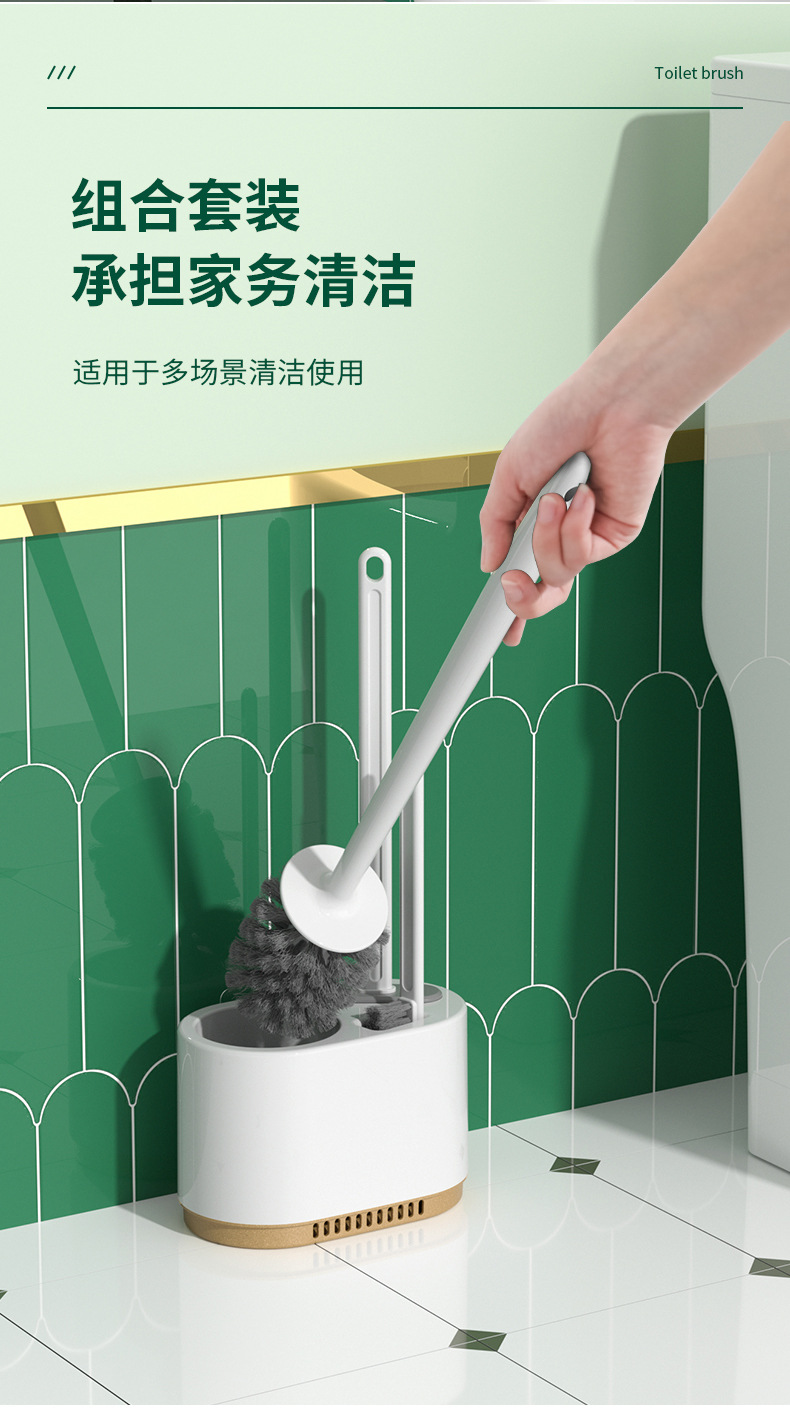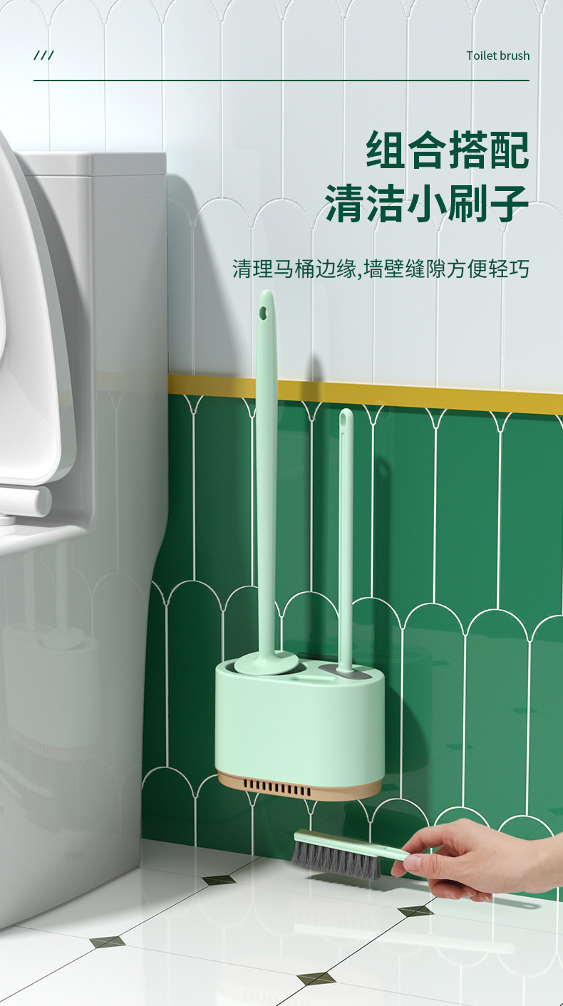 3-in-1 벽걸이형 변기솔 세트, 가정용 욕실용, 막힌 곳 없는 배수구, 화장실 청소용 3종 세트, 청소솔
