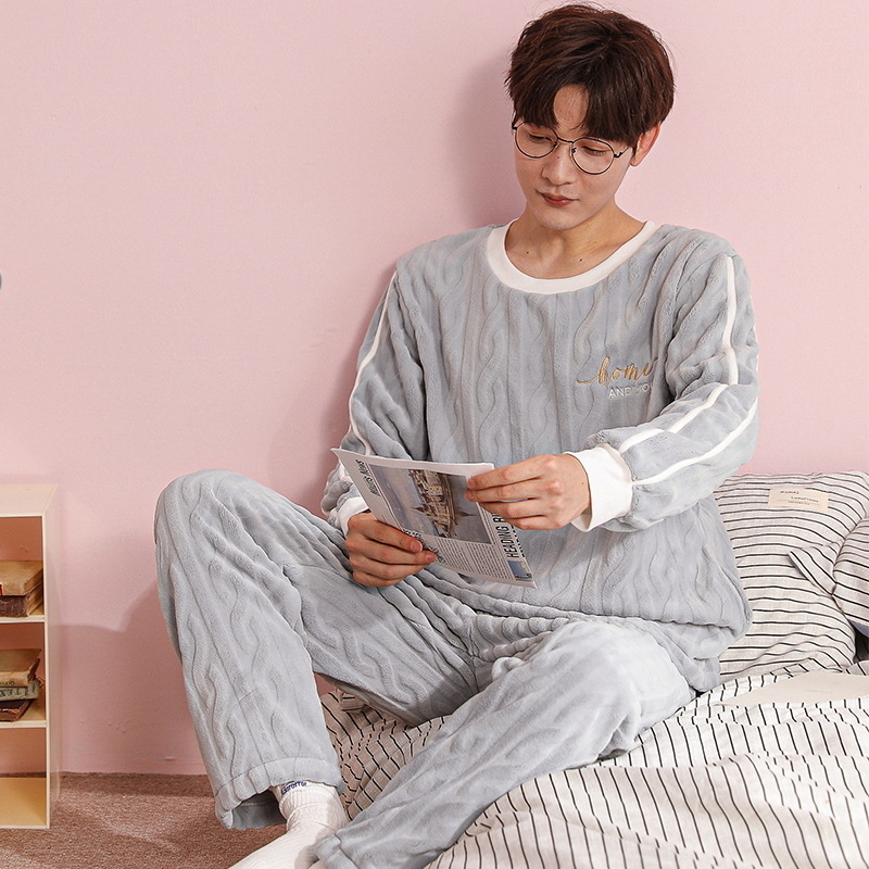 플란넬 커플 잠옷 산호 양털 남자와 여자 겨울 만화 플러스 사이즈 따뜻한 기모 두꺼운 가정 옷 세트