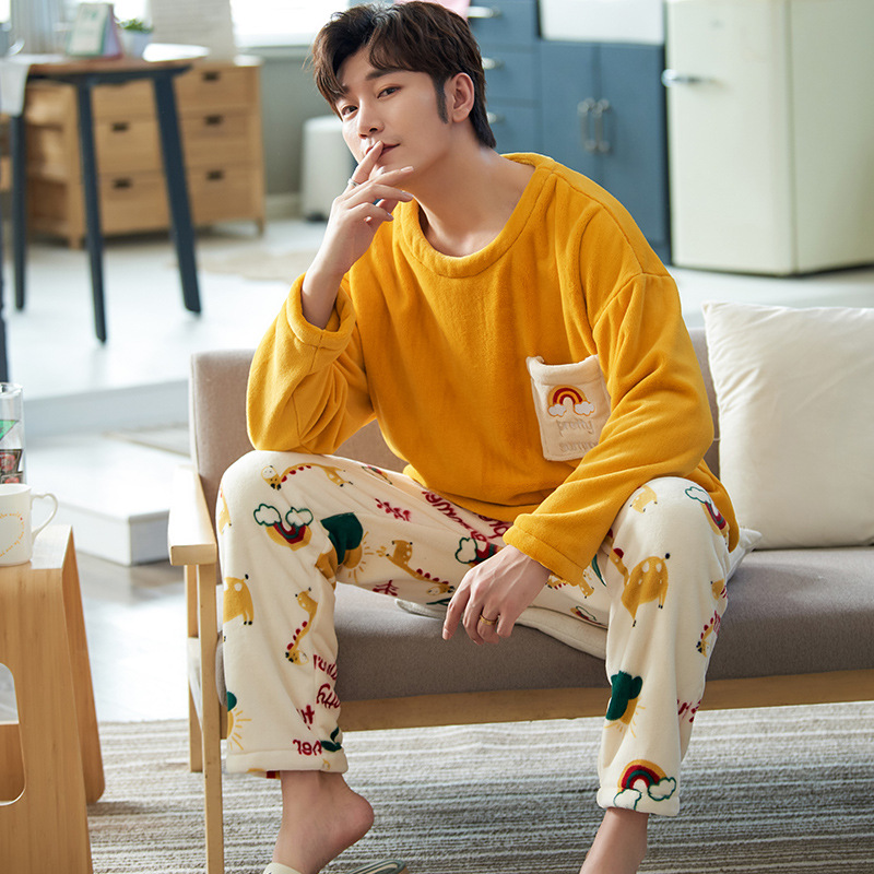 플란넬 커플 잠옷 산호 양털 남자와 여자 겨울 만화 플러스 사이즈 따뜻한 기모 두꺼운 가정 옷 세트스토어 가기