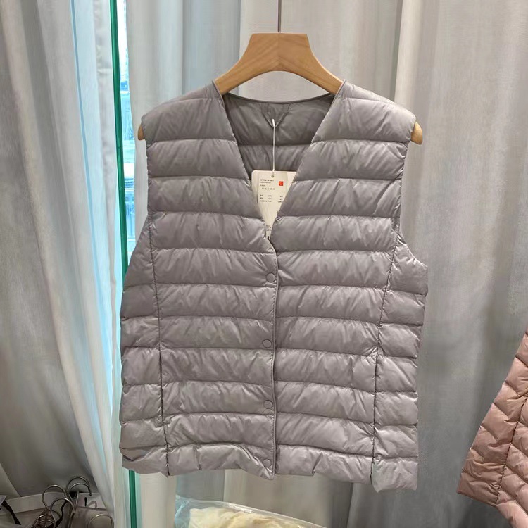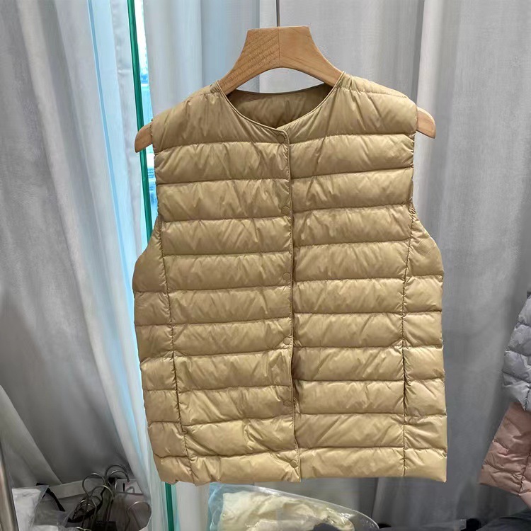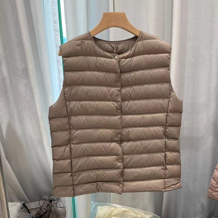 2025 겨울 평화 다운 재킷 조끼 여성용 이너웨어 슬림핏 대형 사이즈 얇은 라운드넥 V넥 조끼스토어 가기