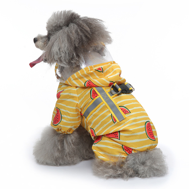 도매 할인 애완동물 비옷 귀여운 딸기 오리 강아지 비옷 네발판 반사형 강아지 비옷 애완동물 비옷