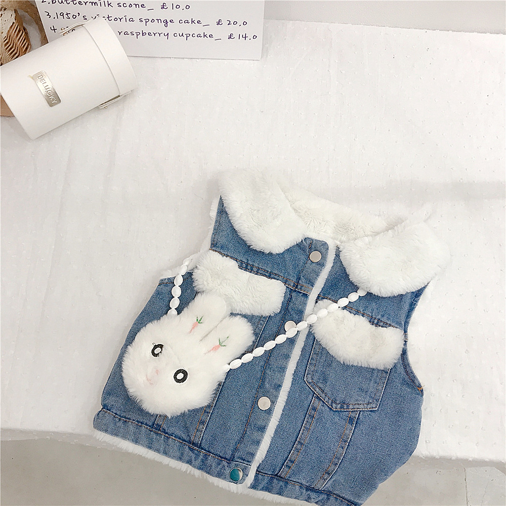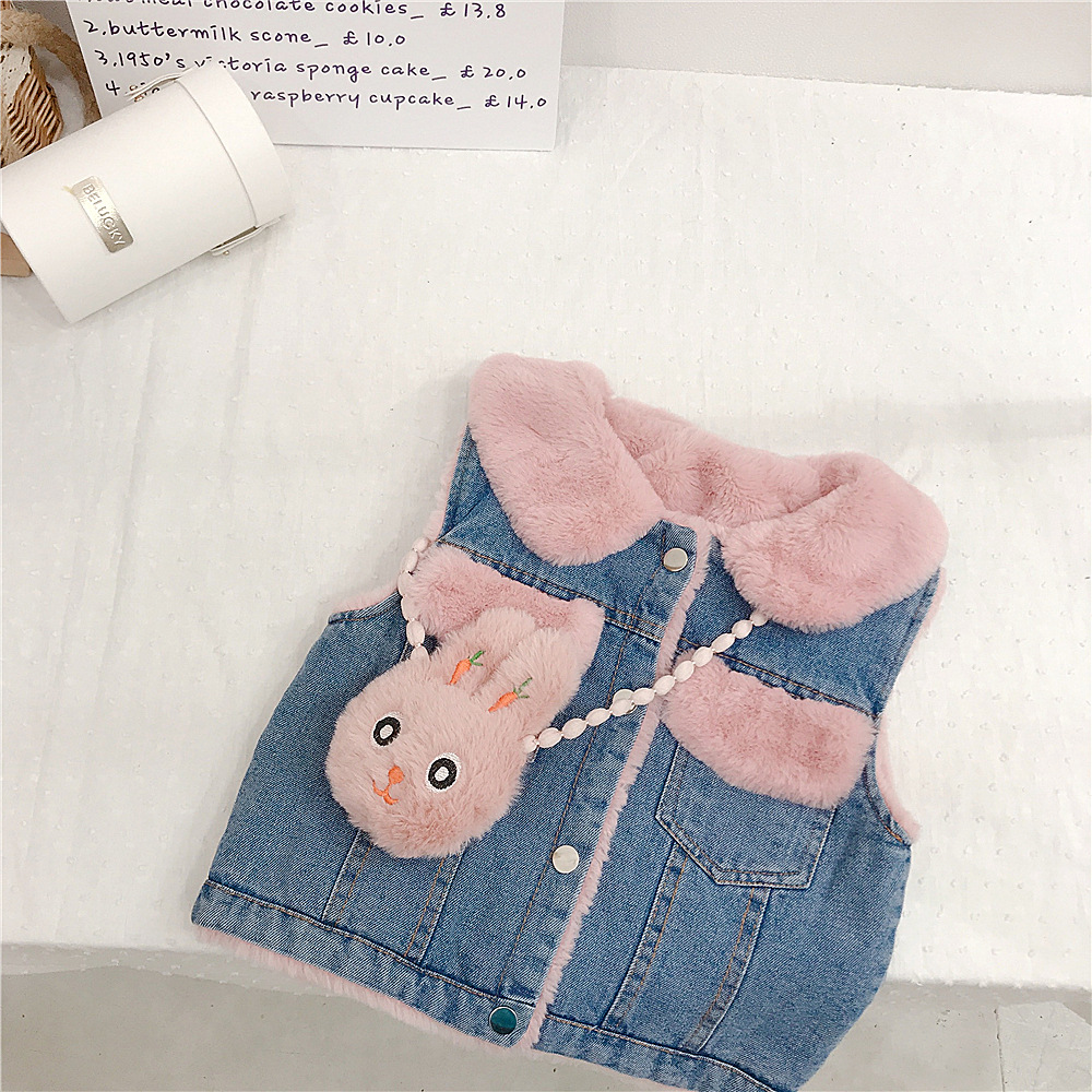 소녀의 가을과 겨울 2022 새로운 서양식 아기 소녀 데님 조끼 어린이의 두꺼운 기모 인터넷 빨간 귀여운 코트스토어 가기