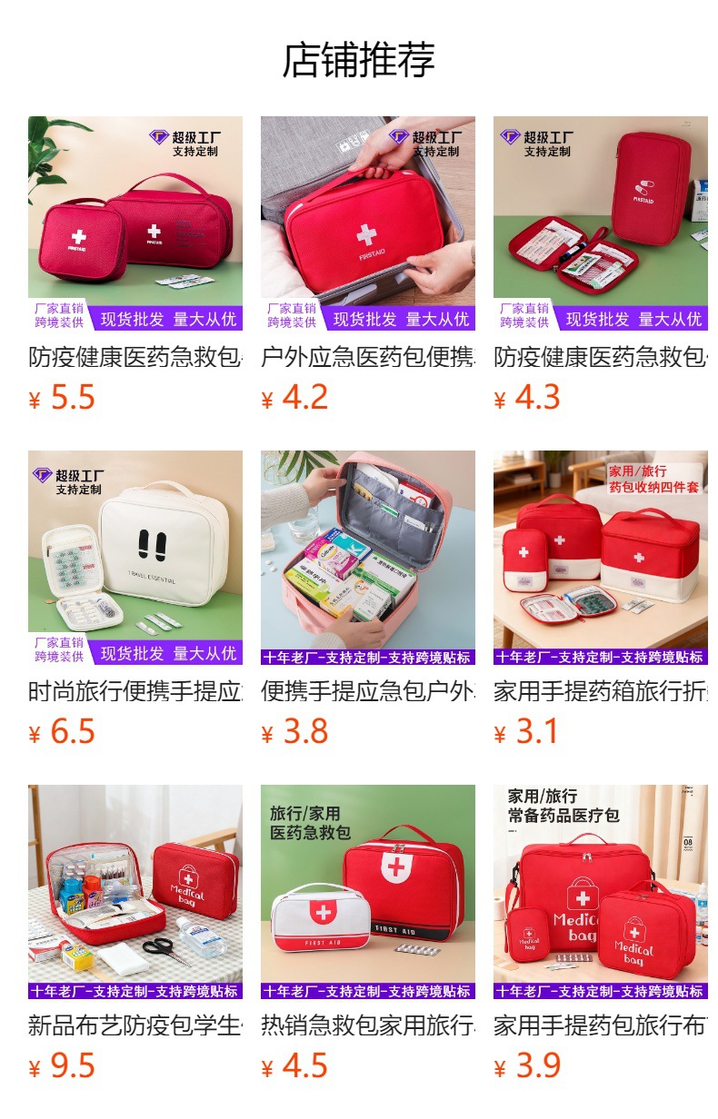 药包收纳袋药物收纳包旅行收纳布袋防水亚马逊跨境便携式手提急救包医疗箱家用车载大容量药品分类健康包防疫包多用途耐磨可收纳工具包医药箱急救箱医疗箱