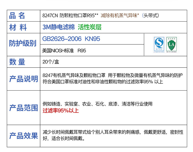 3M8247CN 헤드 착용 자가 프라이밍 비호기 밸브 먼지 방지 연무 미립자 유기 증기 냄새 마스크스토어 가기
