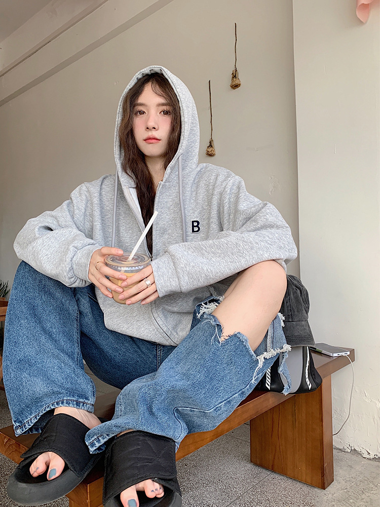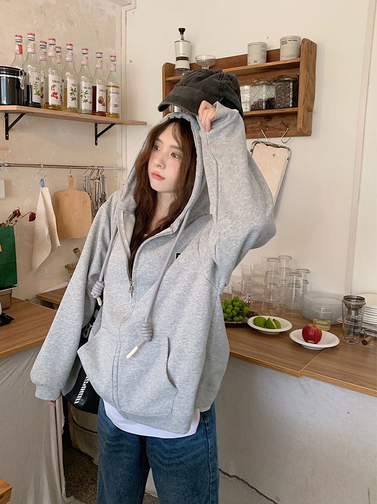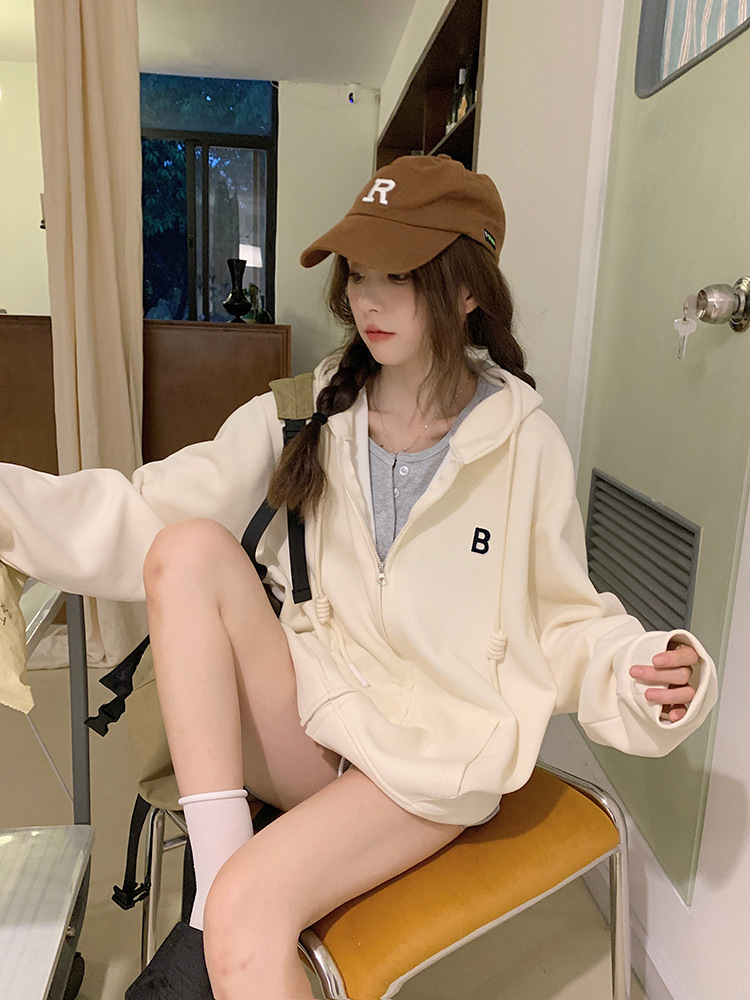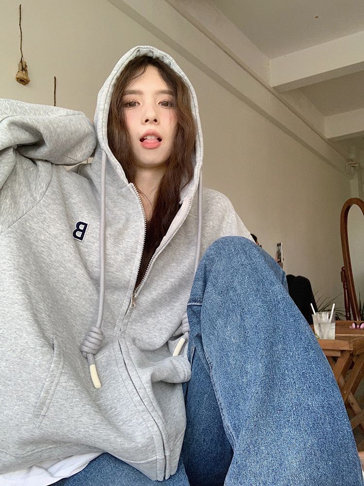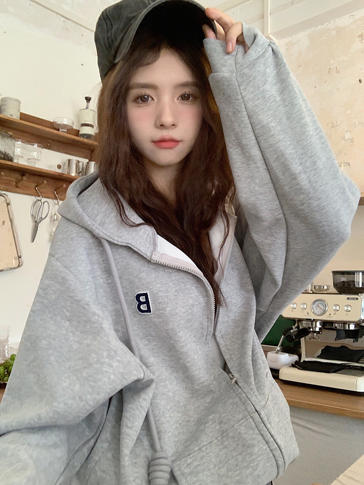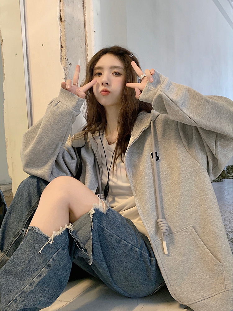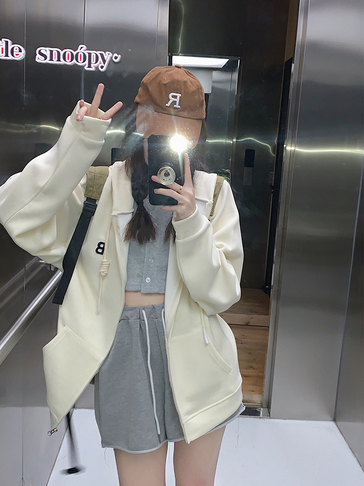 한국 동대문 여성용 신상 후드티셔츠 캐주얼 스포츠웨어 2025 크로스보더 신상 패션 심플 탑 트렌드스토어 가기