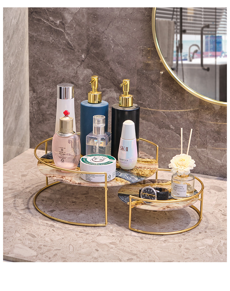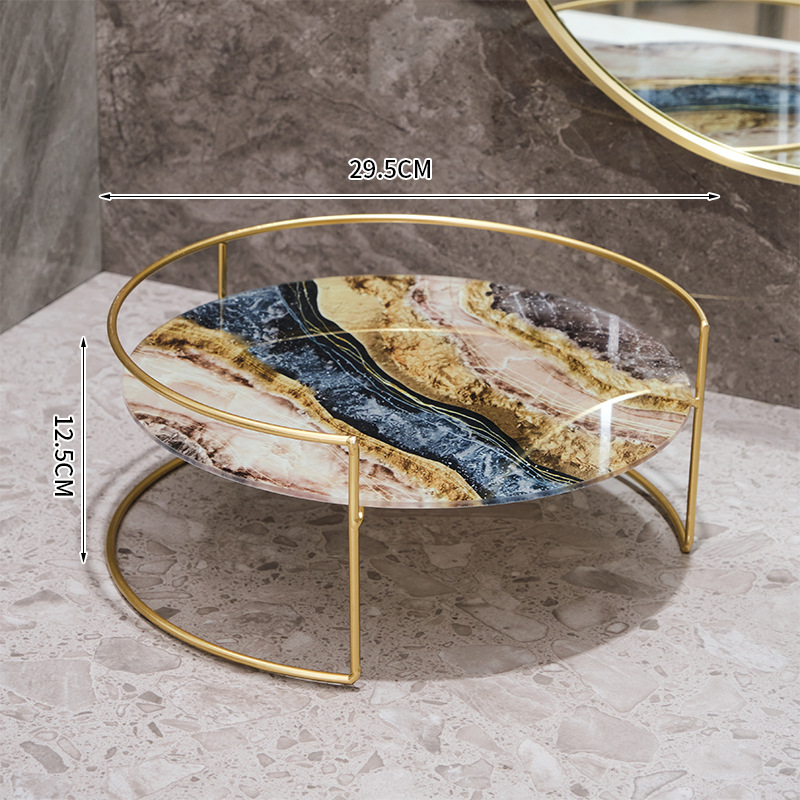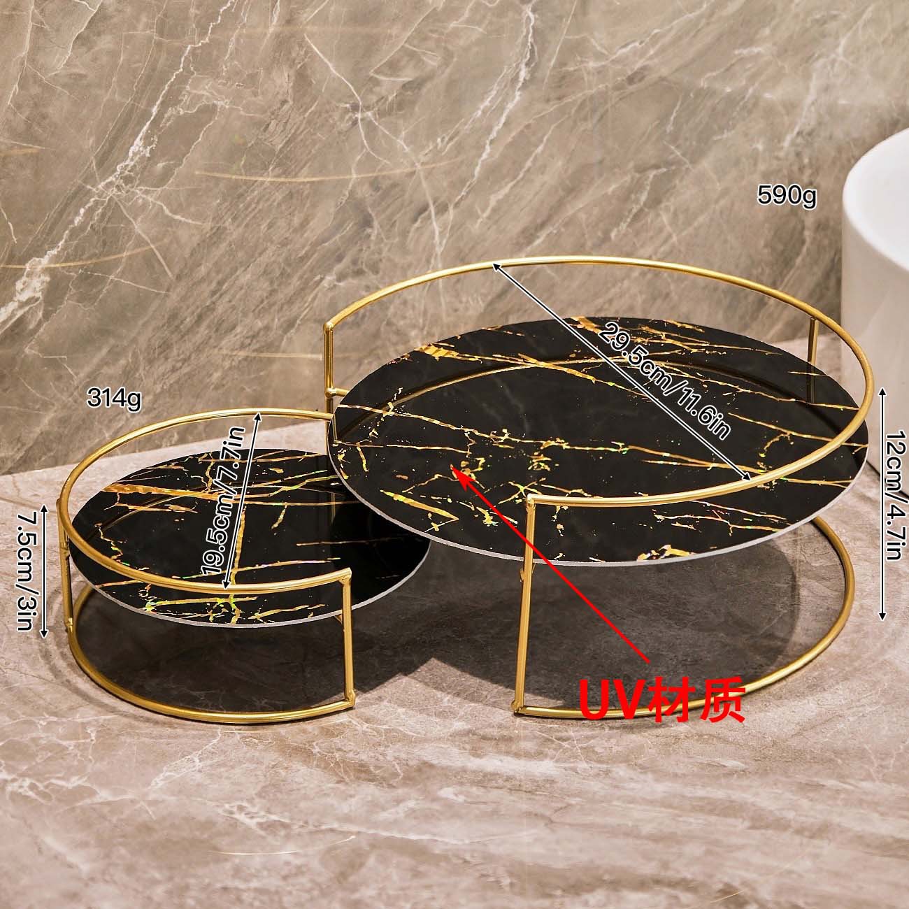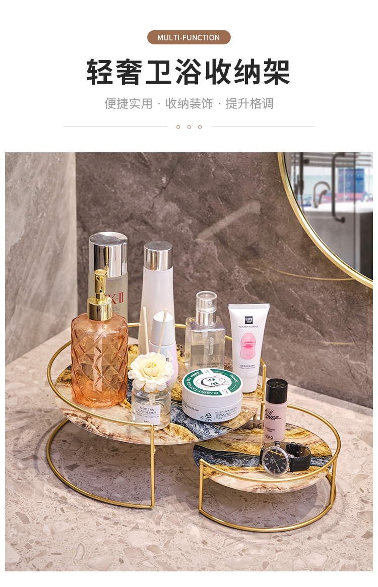 • 욕실 원형 수납 선반 세트 - 블랙 골드 UV 보드