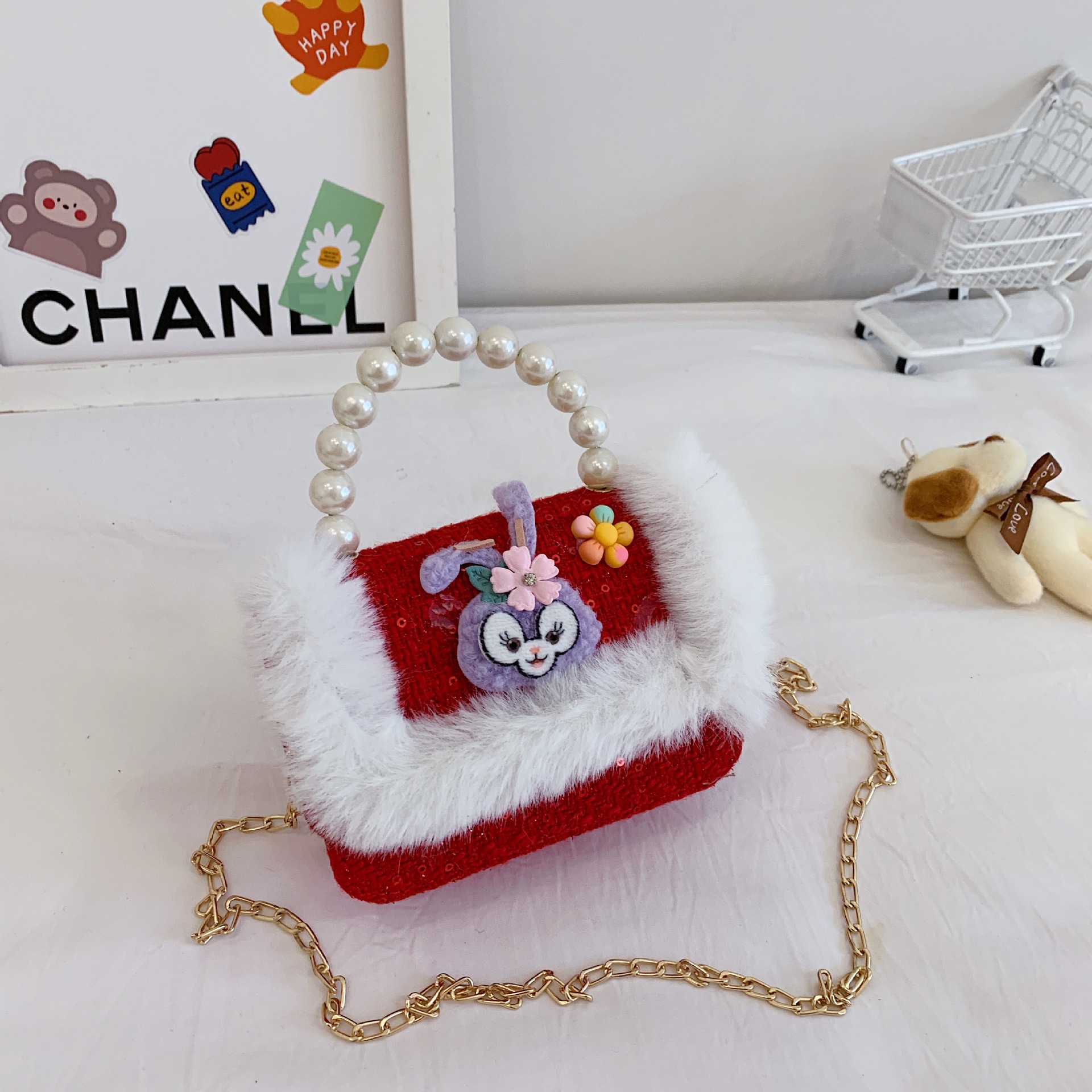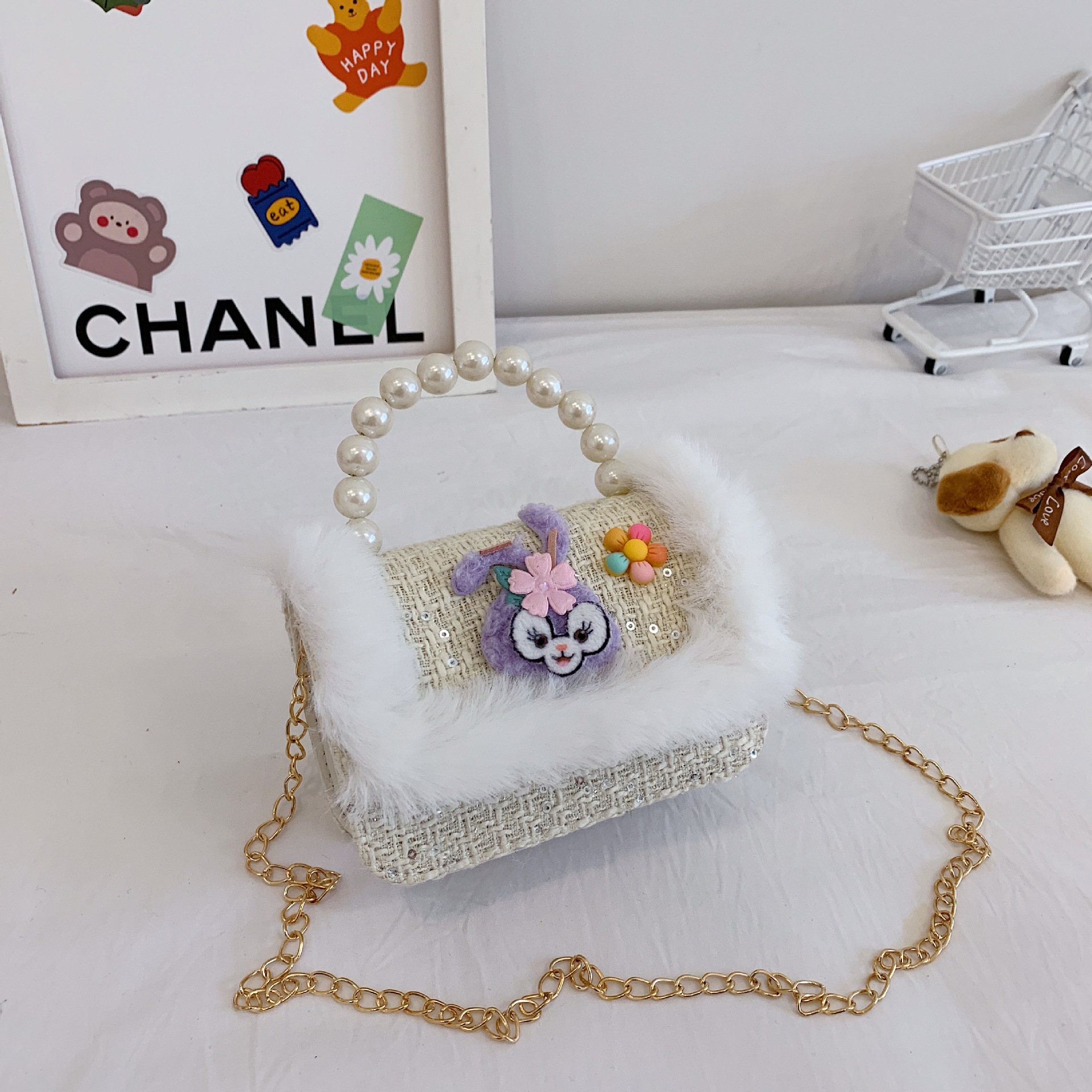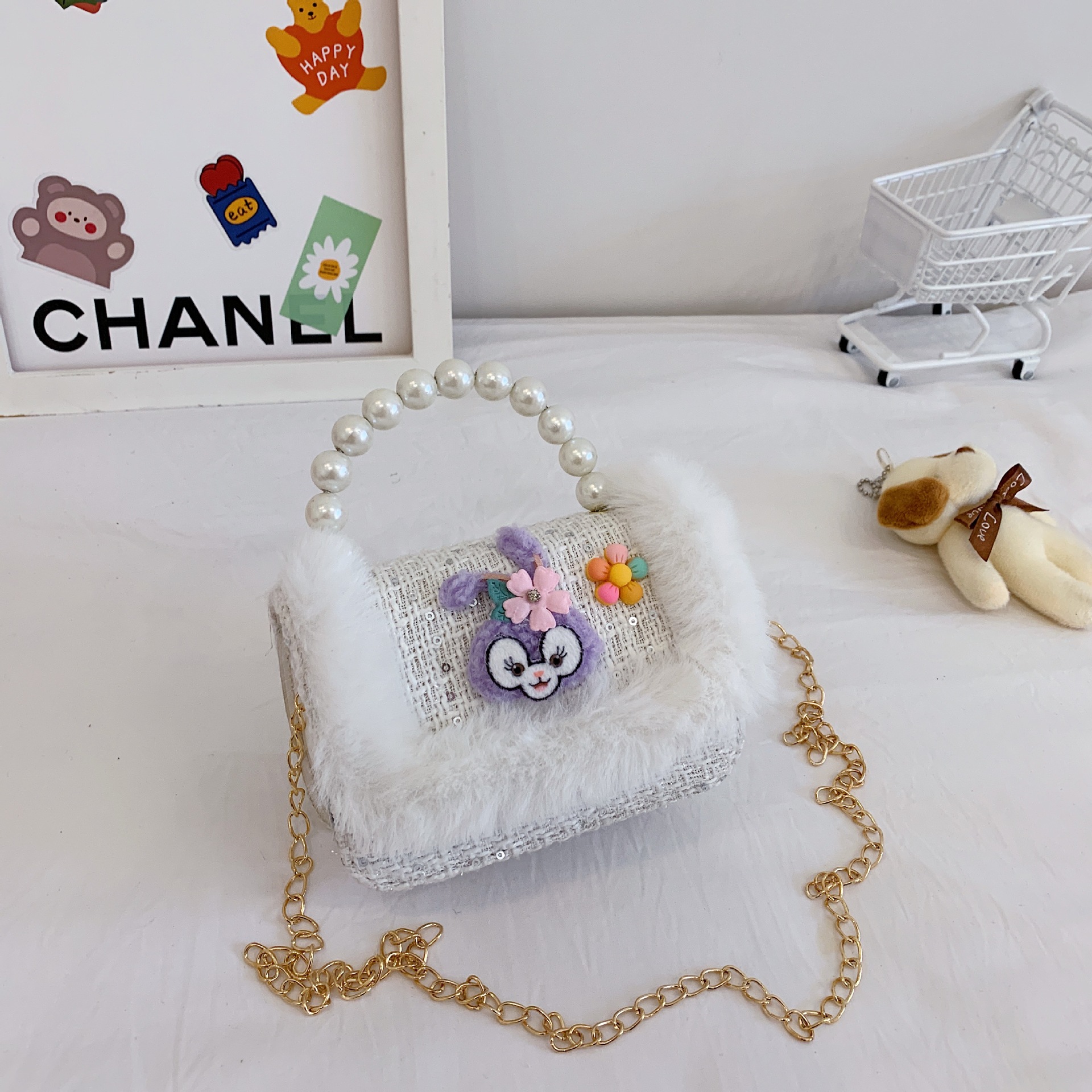 어린이 크로스백, 여아 숄더백, 공주 동전 지갑, 토끼 진주 핸드백, 공주 가방, 다용도 핸드백스토어 가기