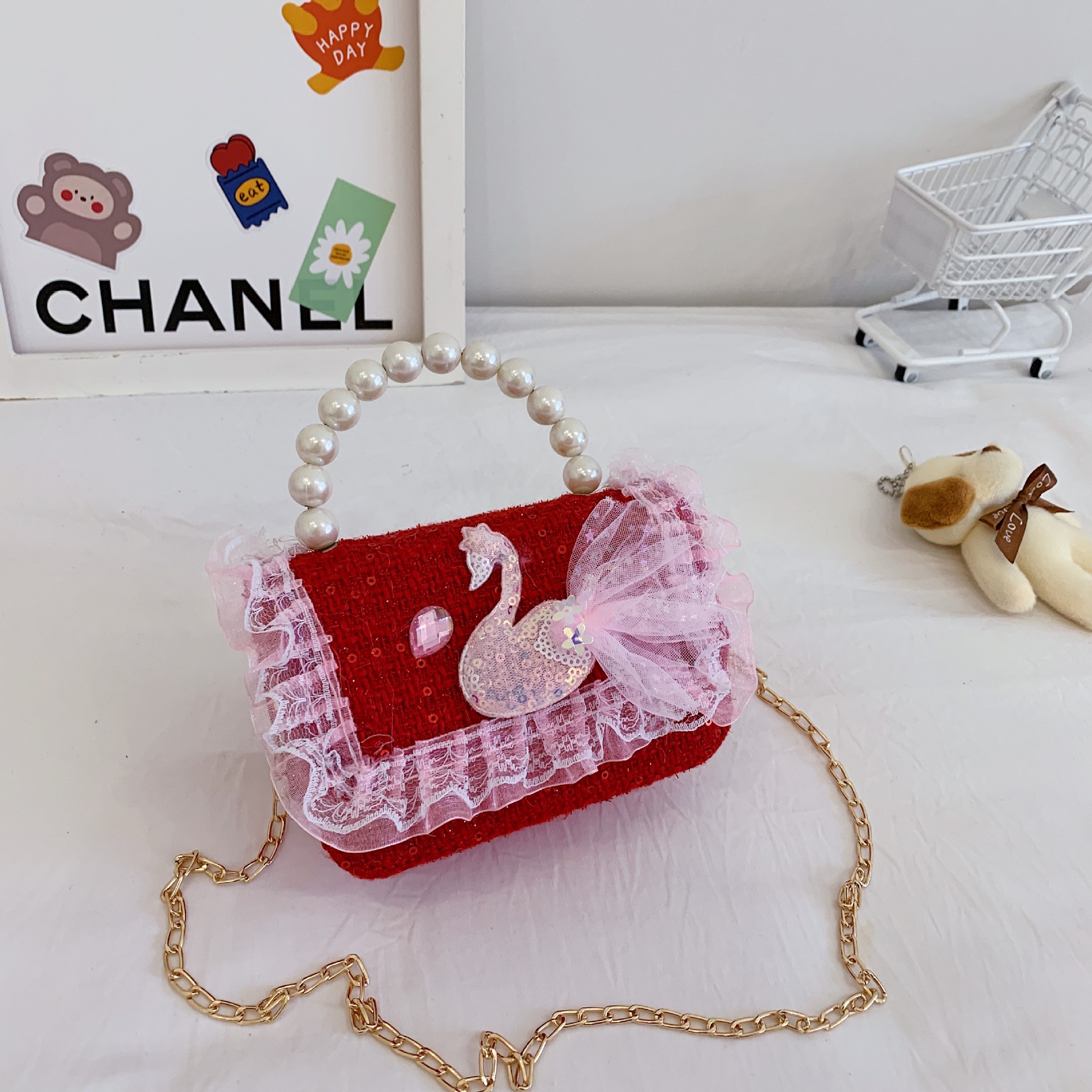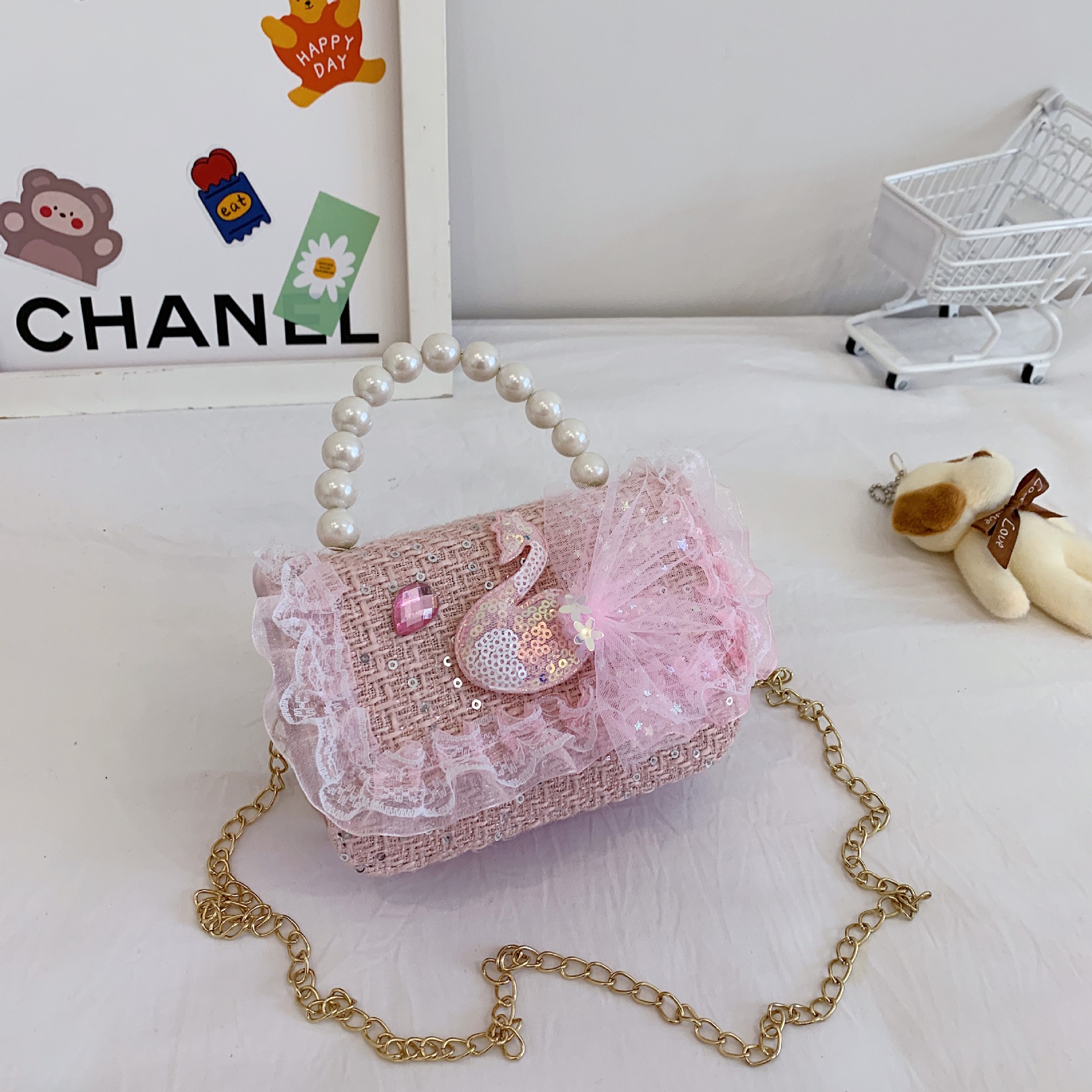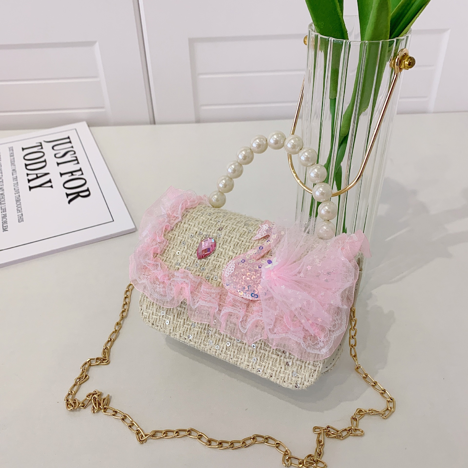 어린이 크로스백, 여아 숄더백, 공주 동전 지갑, 토끼 진주 핸드백, 공주 가방, 다용도 핸드백스토어 가기