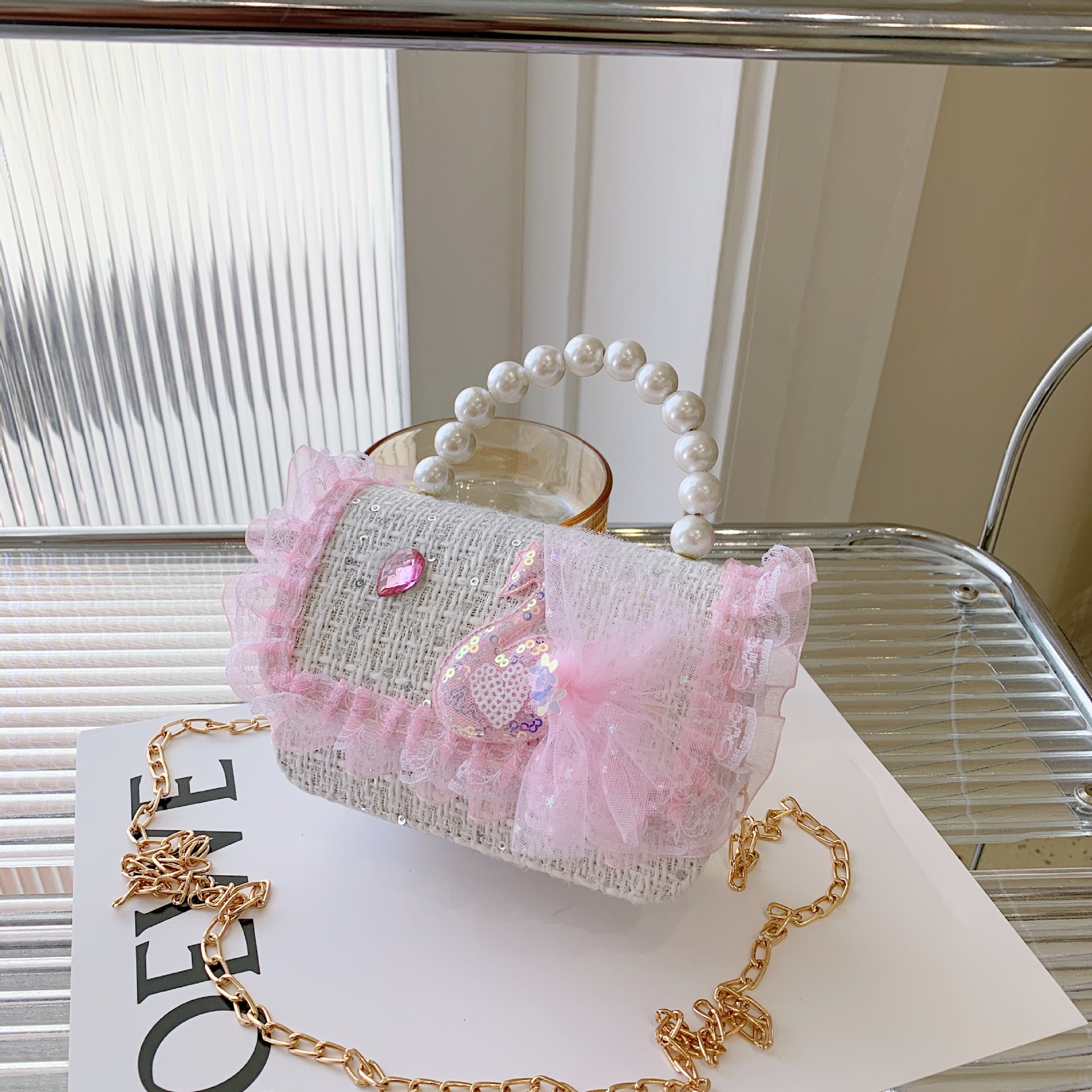 어린이 크로스백, 여아 숄더백, 공주 동전 지갑, 토끼 진주 핸드백, 공주 가방, 다용도 핸드백