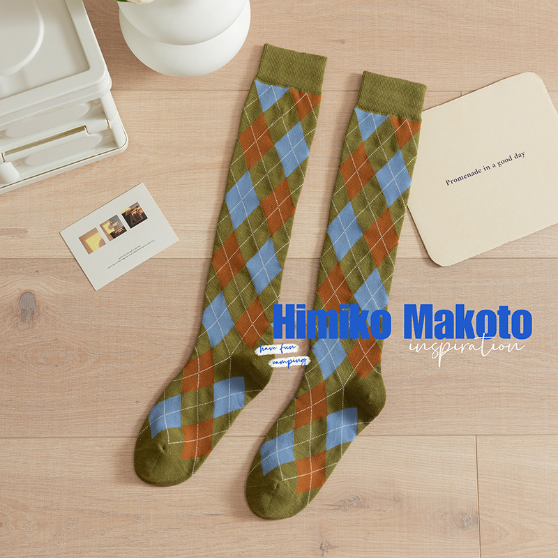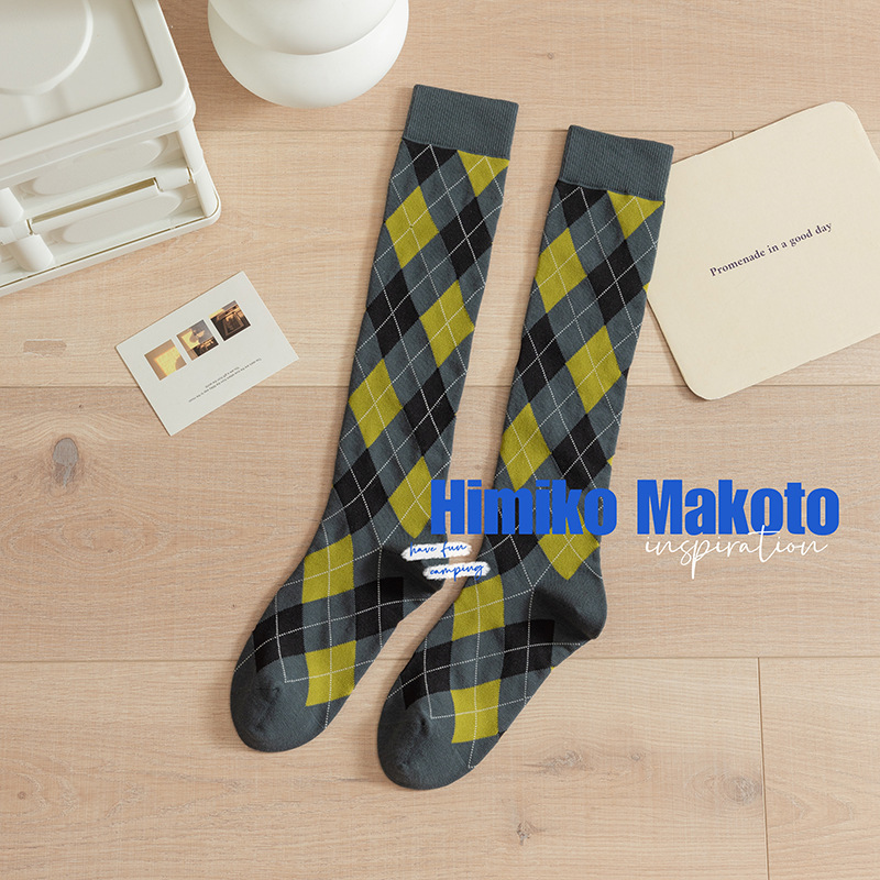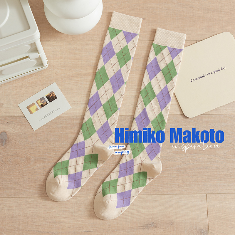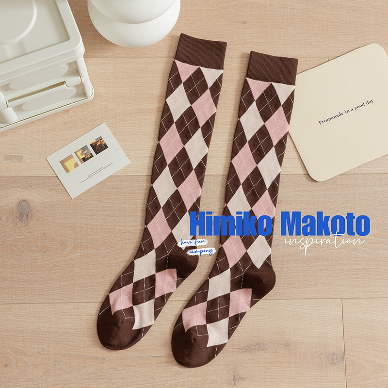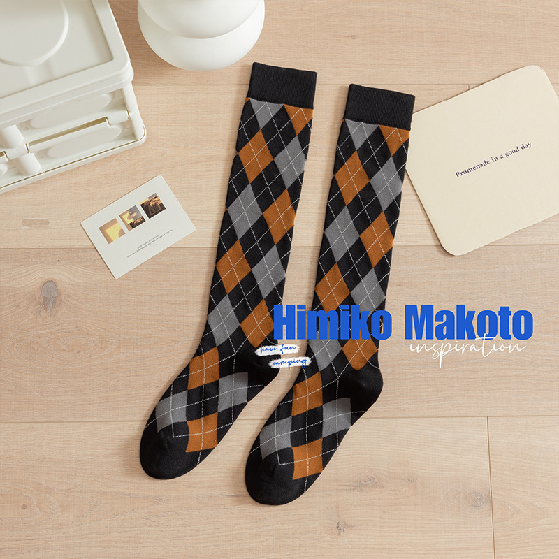 바람 송아지 양말 마름모 높은 양말 글자와 무릎 양말 한국어 버전 영국 양말 여성 조수 가을과 겨울 머리카락 세대스토어 가기
