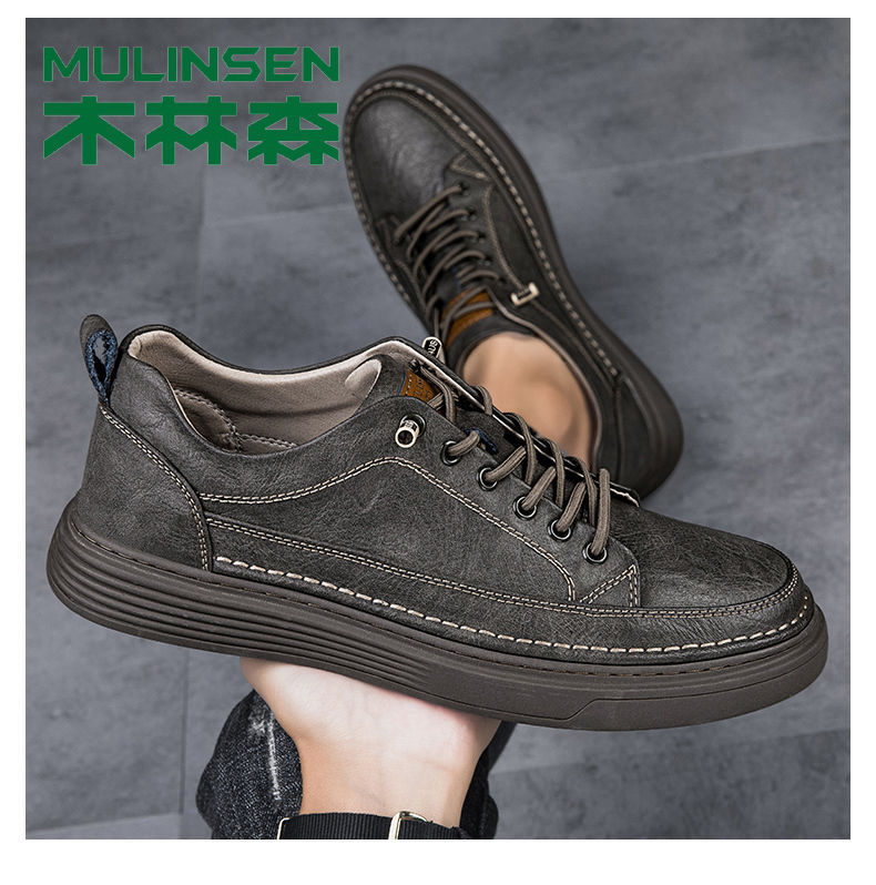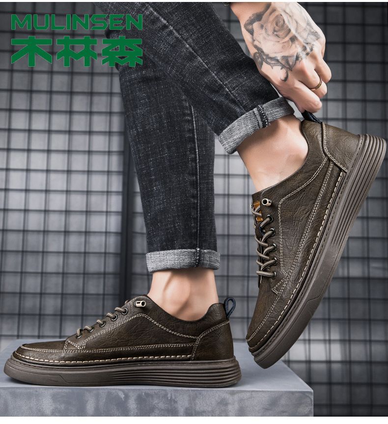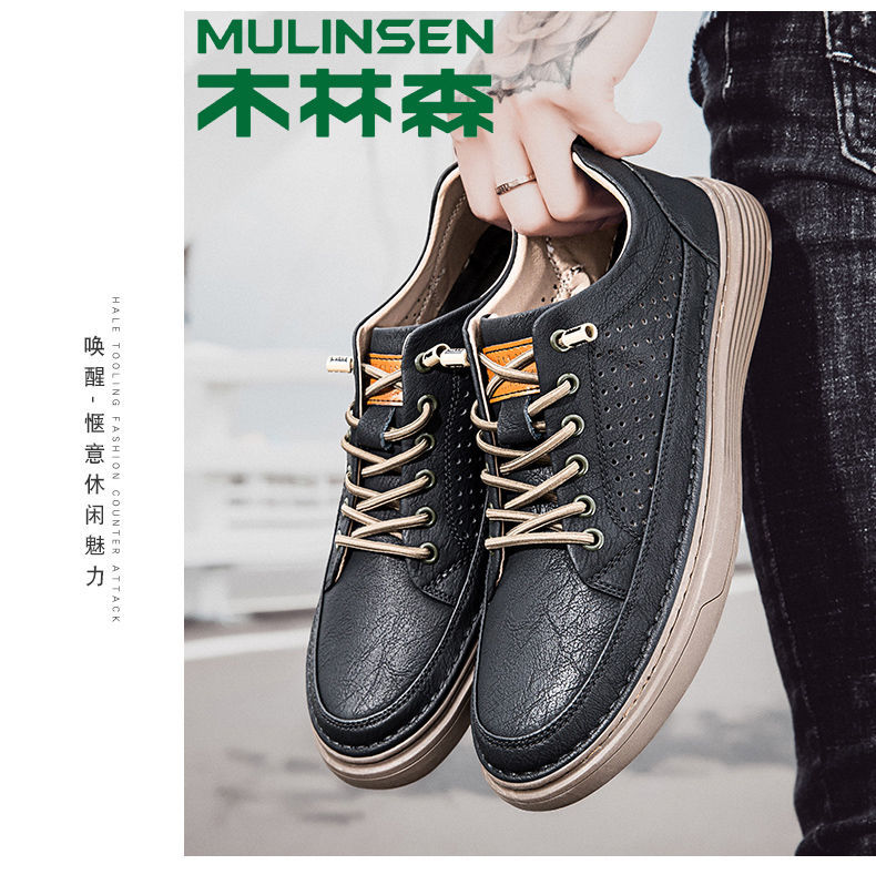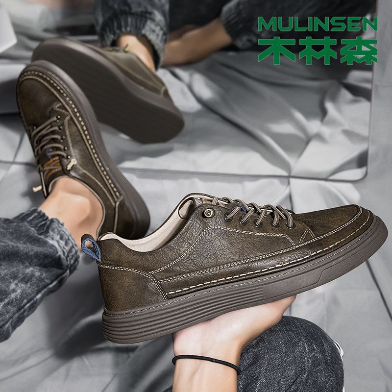 Mullinsen 남성 신발 한국 유행 가죽 신발 가을 통기성 부드러운 밑창 캐주얼 신발 모든 일치 남성 보드 신발스토어 가기