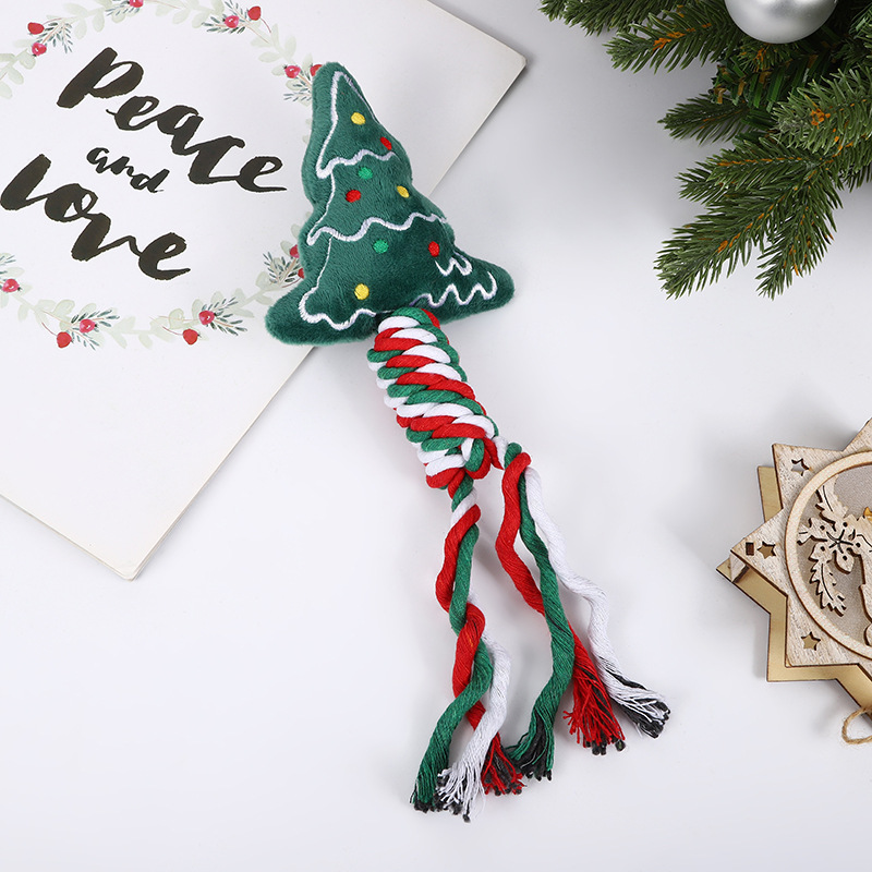 애완 동물 크리스마스 용품 개 장난감 어금니 치아 청소 로프 면 로프 장난감 귀여운 만화 물린 장난감 도매스토어 가기