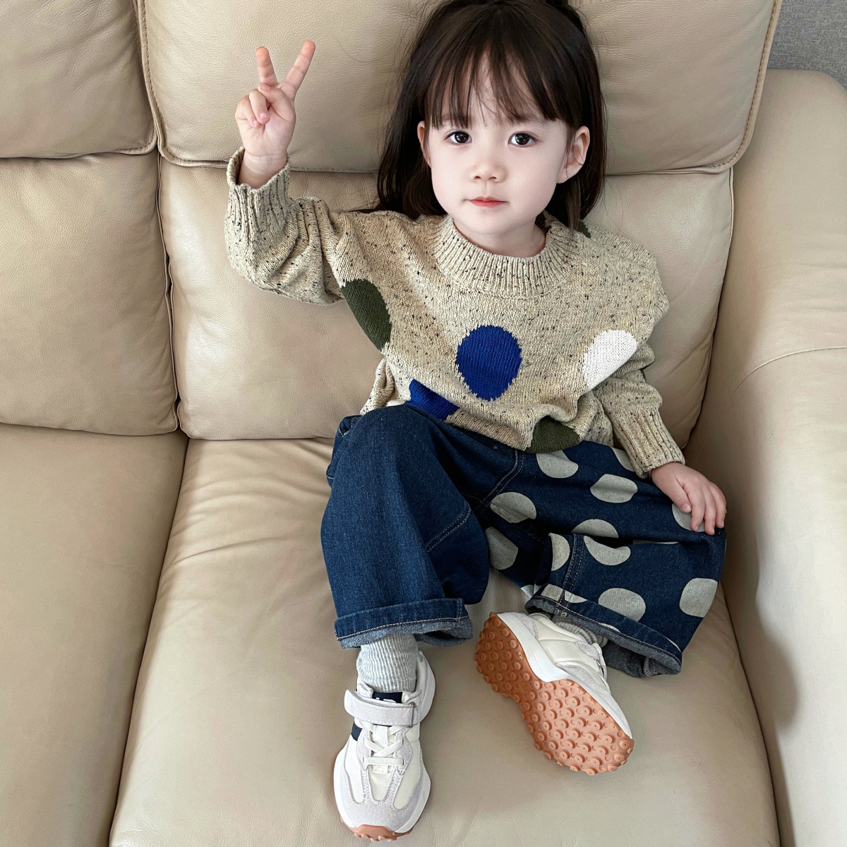 女童加绒牛仔裤,适合秋冬季节,圆点印花可爱系~宽松好穿~