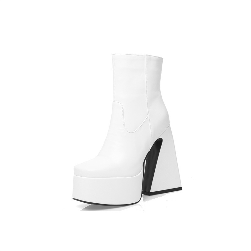 2022 겨울 대외 무역 패션 펑크 스타일 두꺼운 바닥 40-43 스퀘어 헤드 사이드 지퍼 로우 부츠