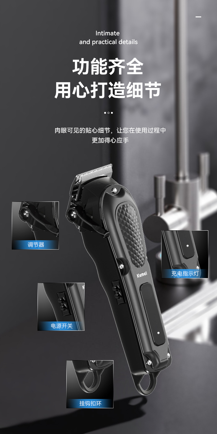 Kemei 전문 전기 클리퍼 자동 연삭 오일 헤드 클리퍼 USB 전기 클리퍼 헤어 살롱 홈 헤어 클리퍼스토어 가기