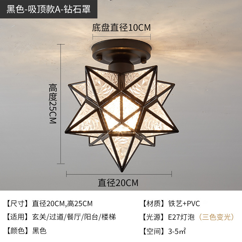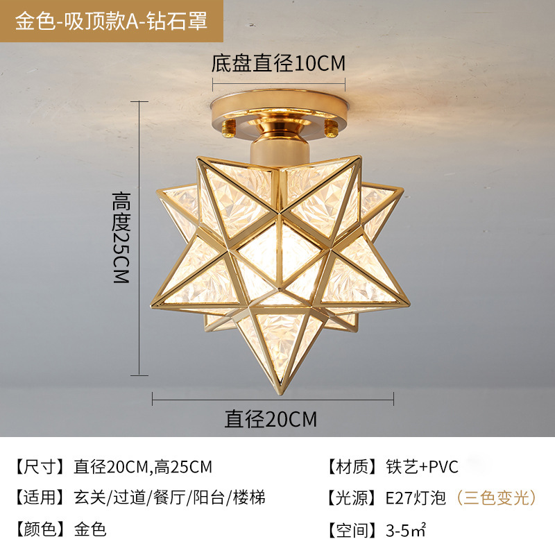 북유럽 간단한 5 점 별 통로 램프 크리스탈 천장 램프 창조적 인 복도 입구 발코니 작은 천장 램프