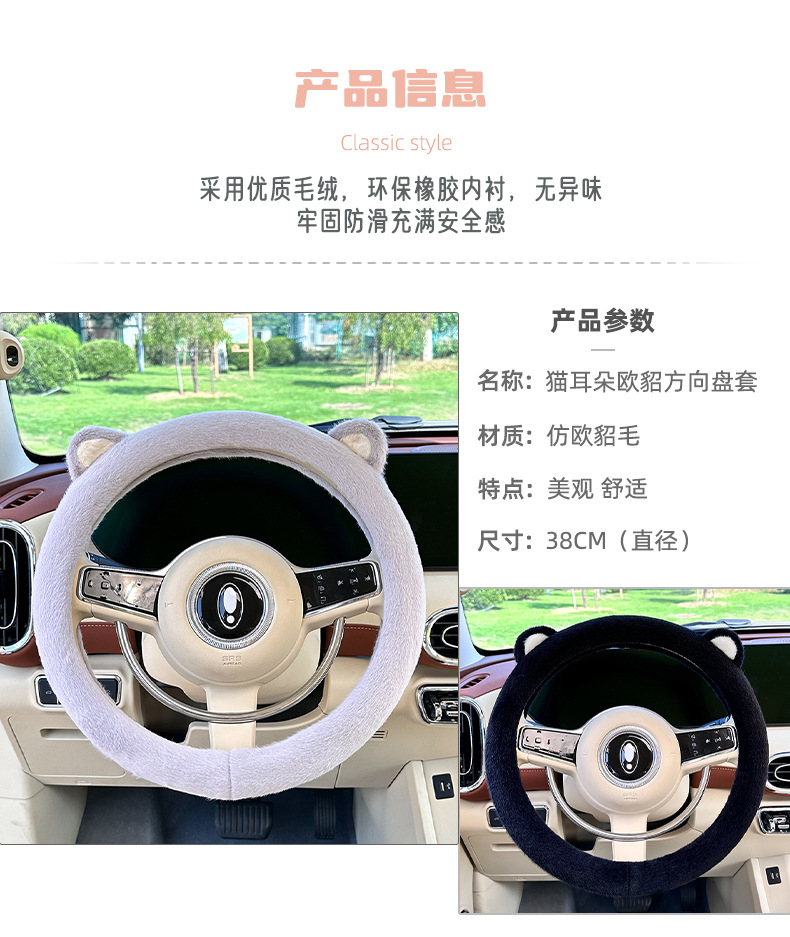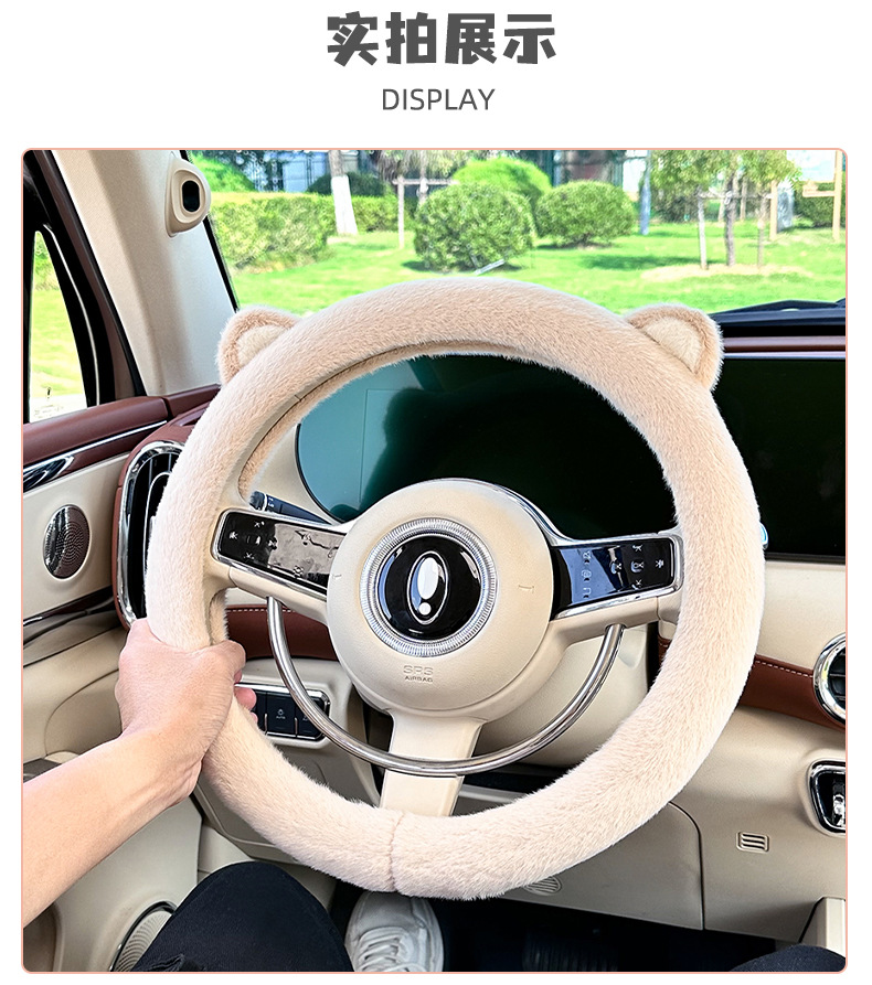 • 고양이 귀 밍크 스티어링 휠 커버 크림