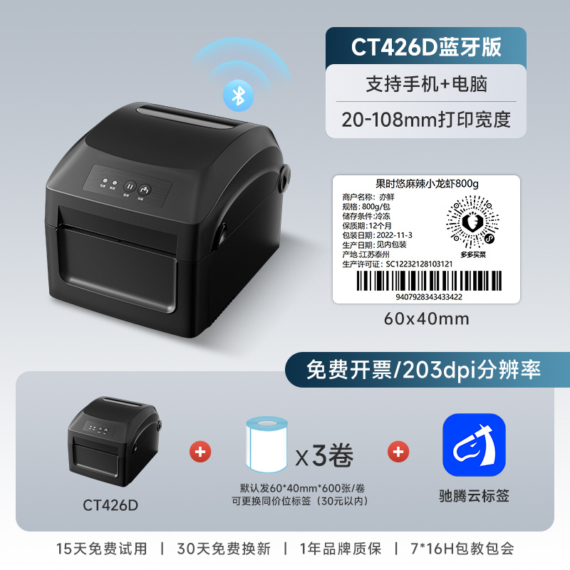 • CT428D 블루투스 버전 [휴대폰 + 컴퓨터 인쇄] 라벨 용지 2롤 무료 제공