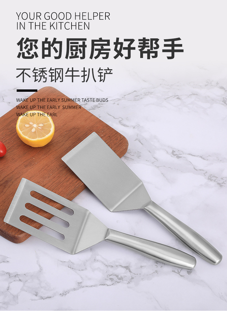 스테인레스 한국식 튀김 삽 풀 스틸 핸들 스테이크 튀김 삽 테파냐키 압력 삽 조리 삽 조리 도구 스테이크 삽스토어 가기