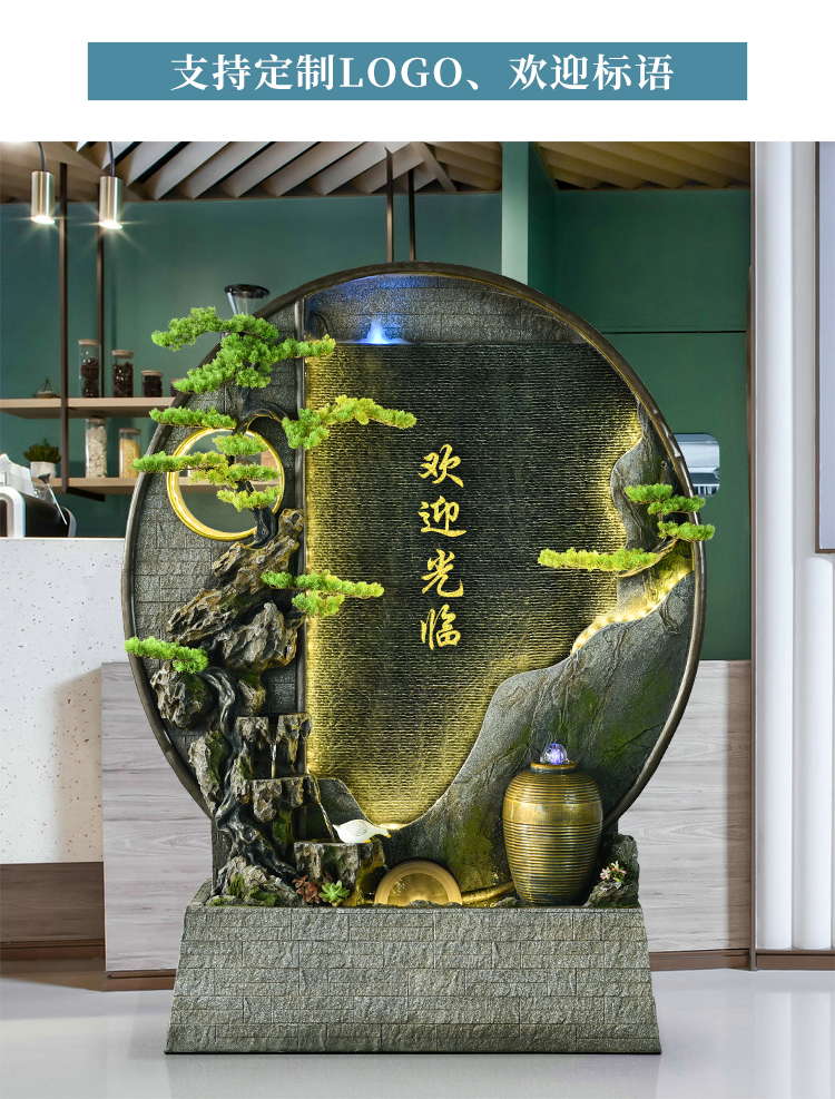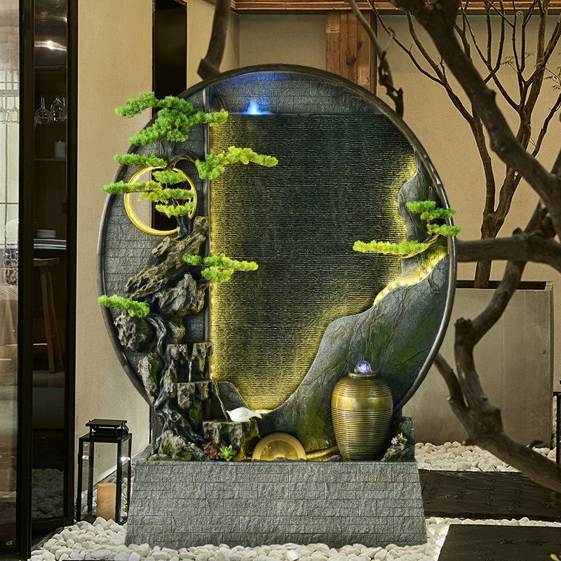 새로운 중국 스타일 물 커튼 벽 물 장식품 스크린 풍경 실내 분수 장식 분수