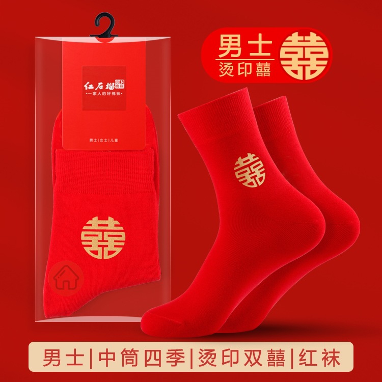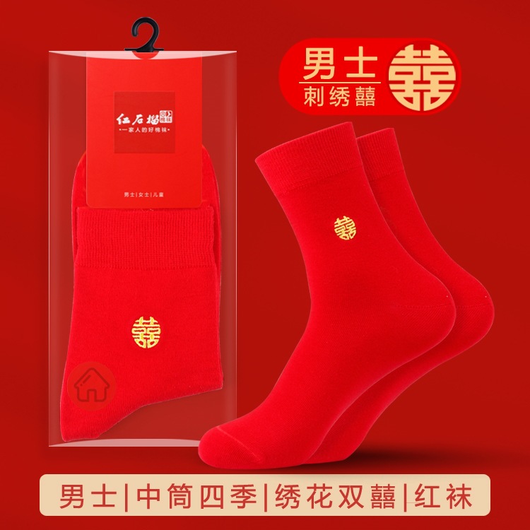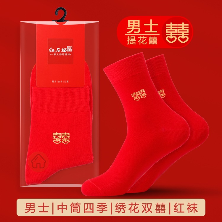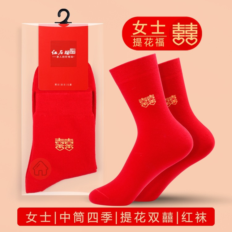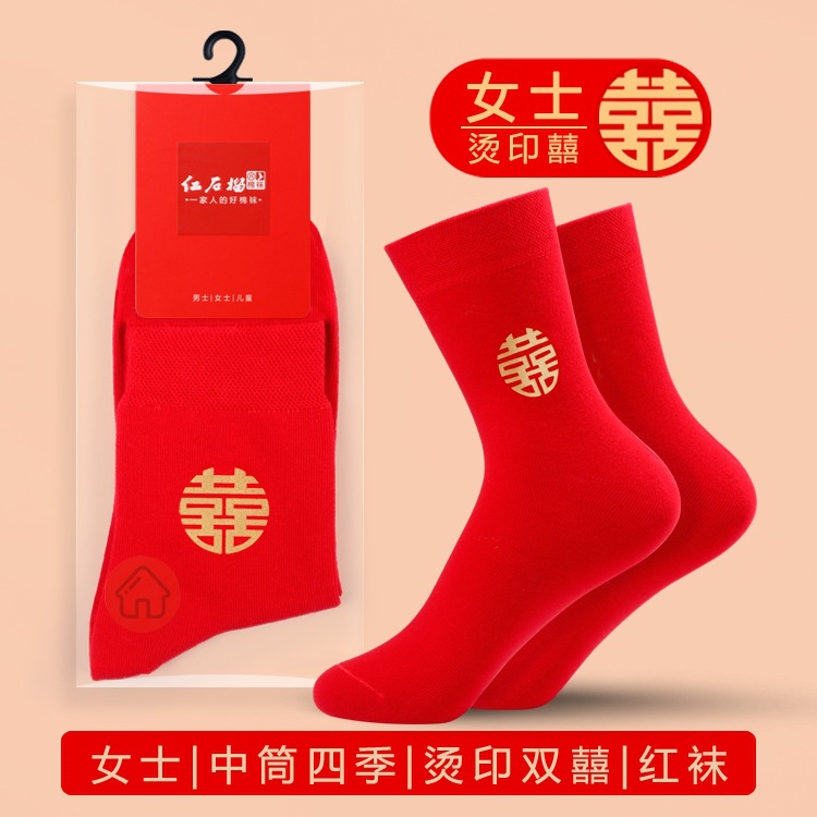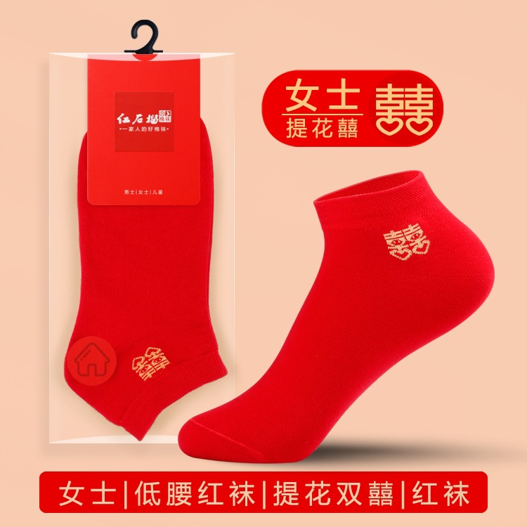 남자와 여자를위한 빨간 양말 커플의 결혼식 년 수 놓은 행복한 단어 운 단어 중간 양말 빨간 보트 양말 보이지 않는 양말스토어 가기