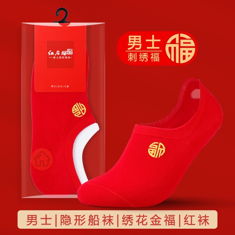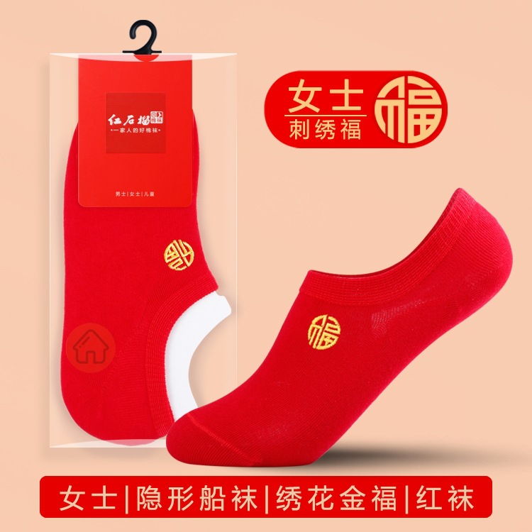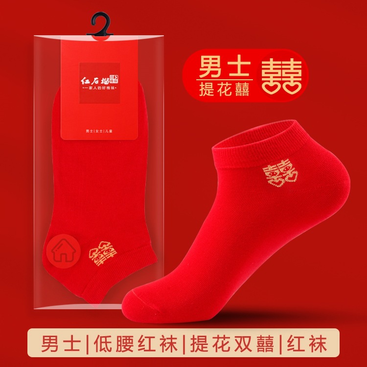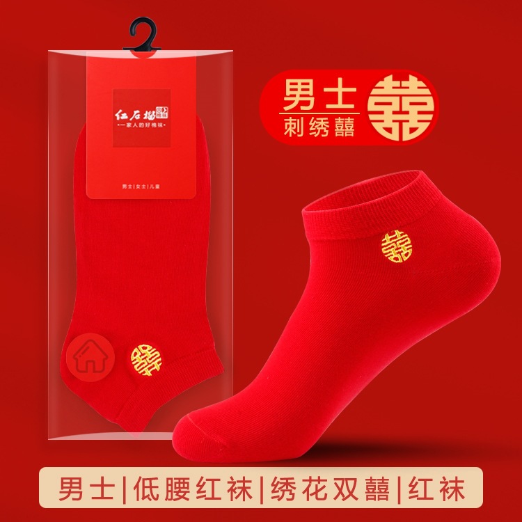 남자와 여자를위한 빨간 양말 커플의 결혼식 년 수 놓은 행복한 단어 운 단어 중간 양말 빨간 보트 양말 보이지 않는 양말