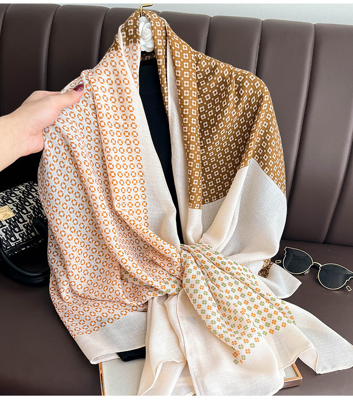 실크 스카프 얇은 스카프 면과 린넨 스카프 여성용 가을과 겨울 한국식 만능 롱 스카프 여름 태양 보호 숄 이중 사용