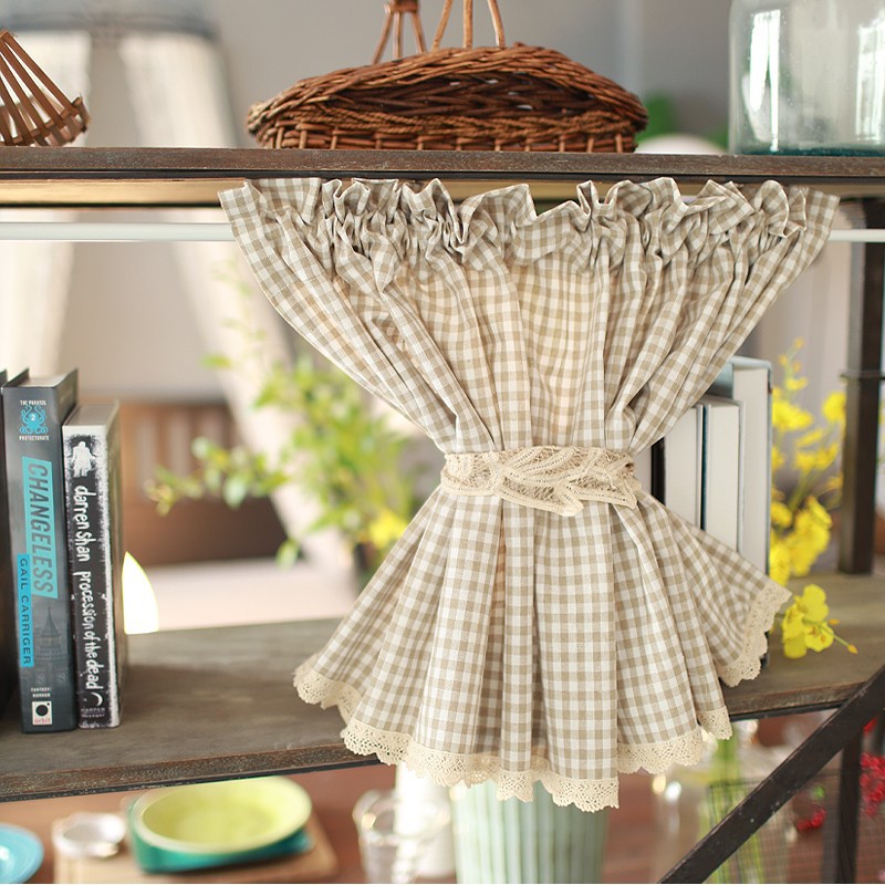 북유럽 아메리칸 스타일 대마 면 작은 격자 무늬 얕은 커피 캐비닛 도어 커튼 작은 커튼 반 커튼 커피 커튼 대외 무역 커튼 반 커튼