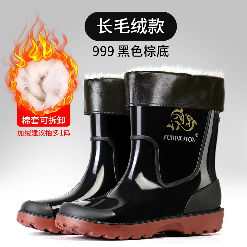 장화 남성 고층 기모 따뜻한 사계절 장화 방수 미끄럼 방지 내마모성 고무 신발 사이트 노동 보호 방수 신발스토어 가기
