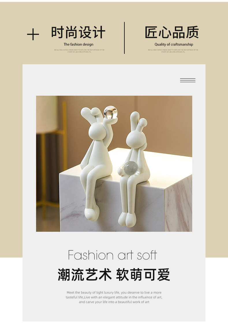 북유럽 빛 럭셔리 현대 토끼 장식 크리 에이 티브 간단한 거실 TV 캐비닛 사무실 데스크탑 귀여운 장식품